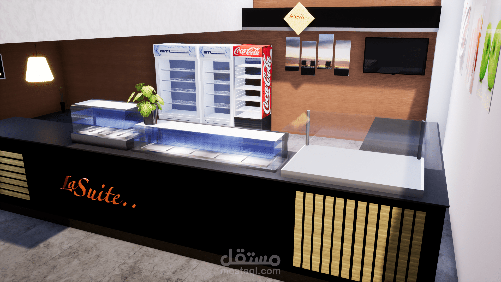 i made this 3D design from scratch for a client, he needed an interior design for a coffee shop