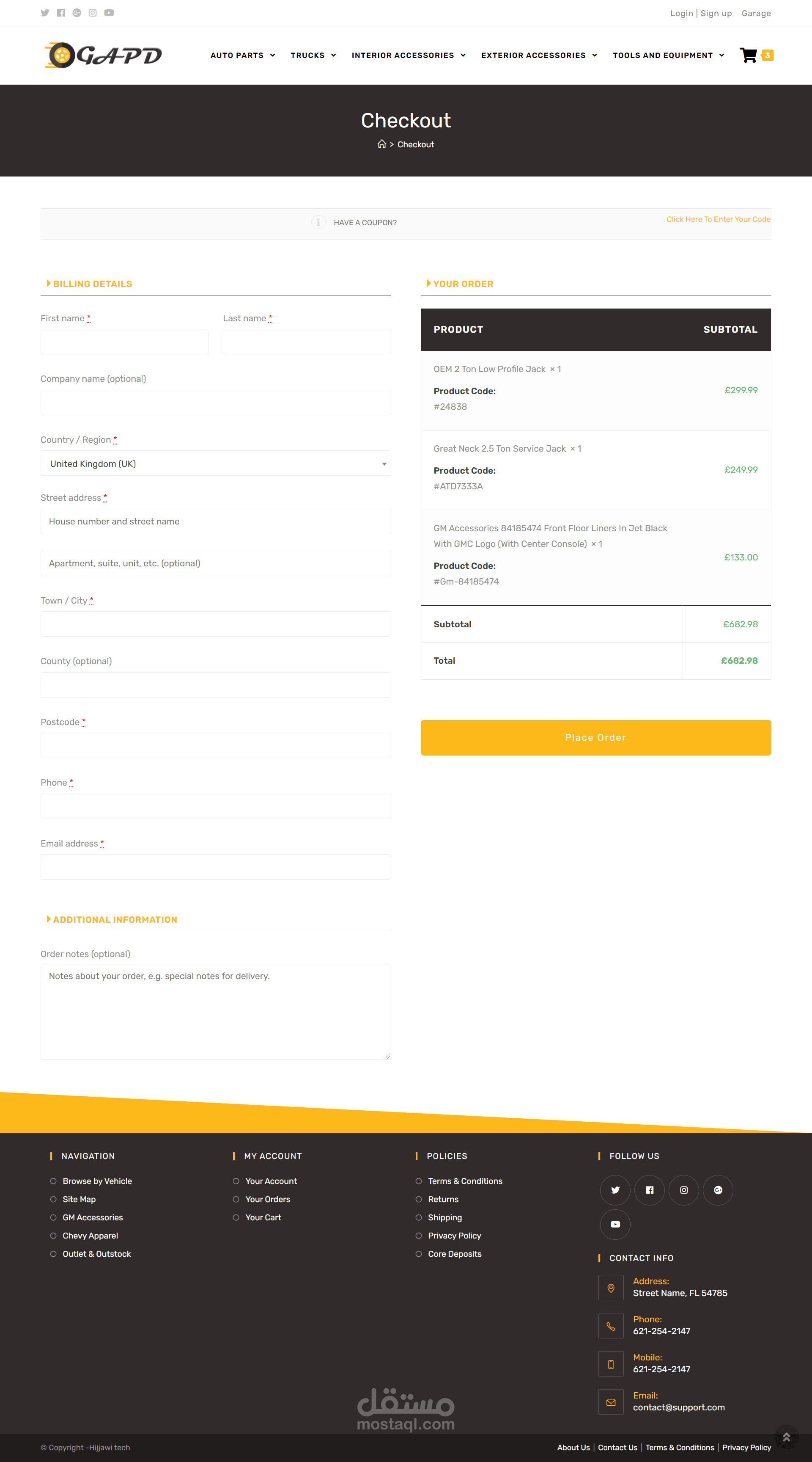 موقع لمتجر لقطع غيار السيارات و زيوتها