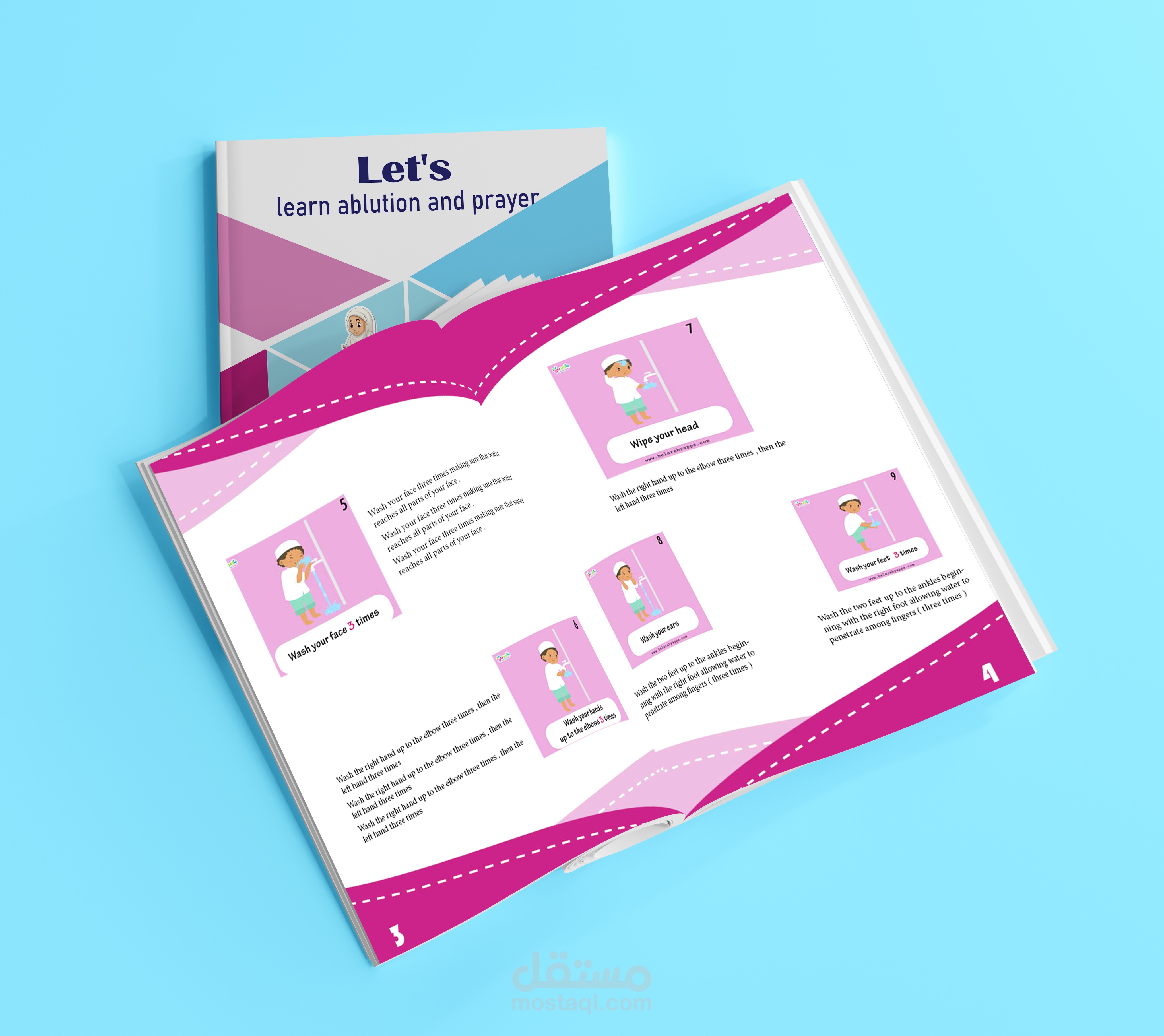 كتاب اطفال يعرض احكام الاسلام للطفل من حيث كيفيه الوضوء والصلاه