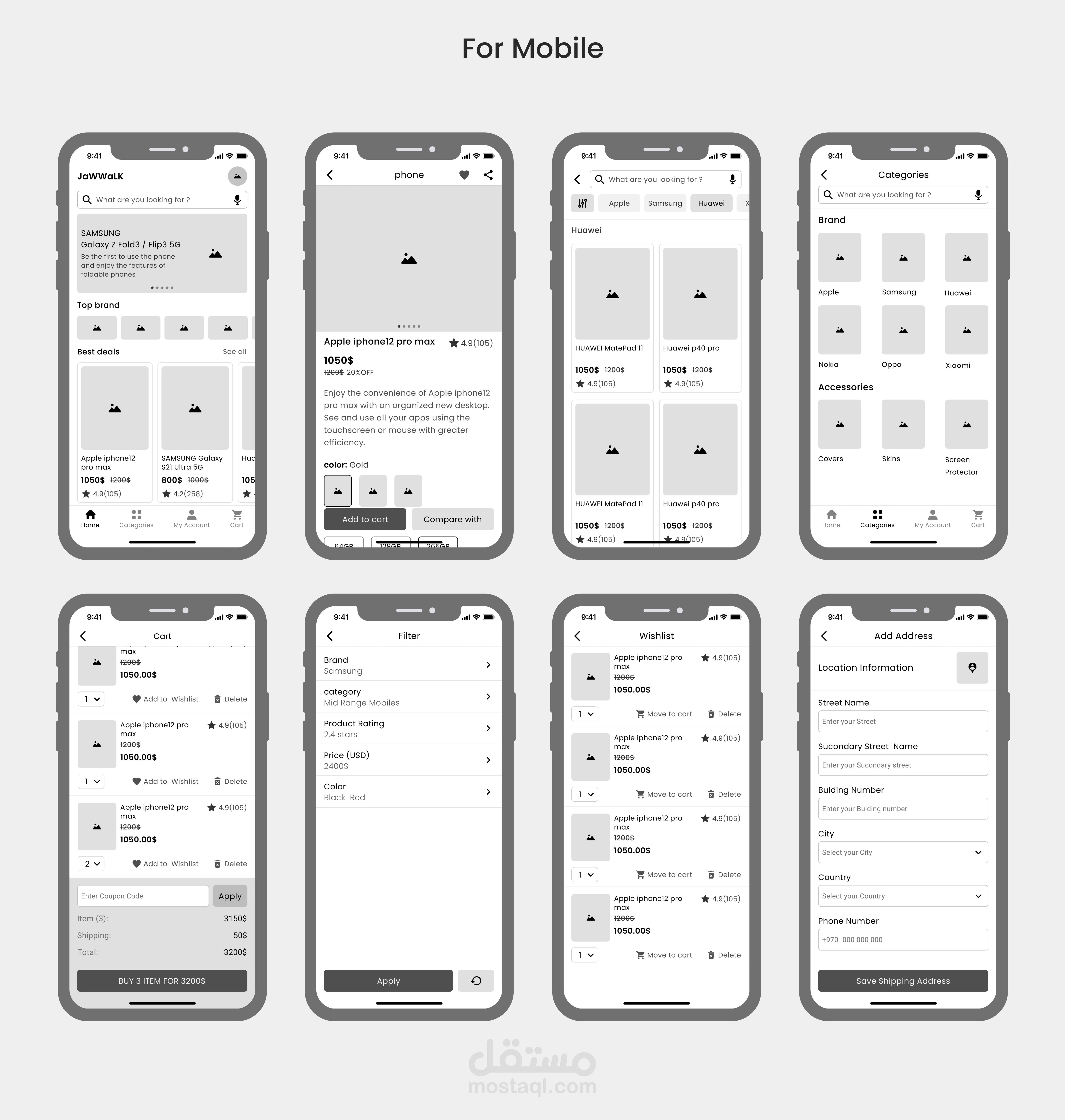 يحتوي الموقع والتطبيق على جميع فئات الهواتف والمقارنة بين الهواتف وبيع ملحقات الهاتف.