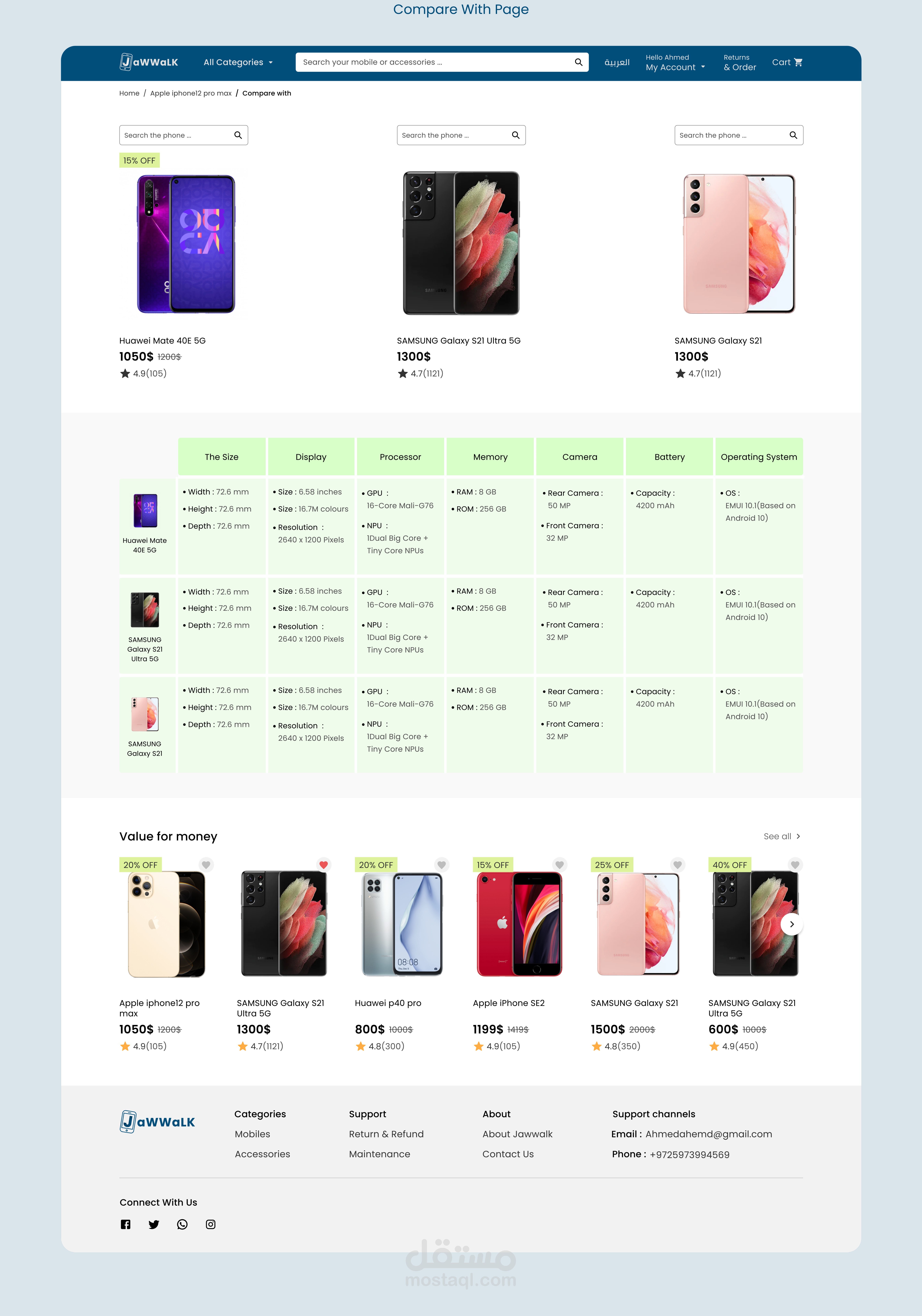 مع زيادة عدد الهواتف في السوق أصبح من الصعب تحديد الهاتف الذي يلبي احتياجاتك بالسعر المناسب لك ، لذلك تم إنشاء موقع وتطبيق jawwalk.