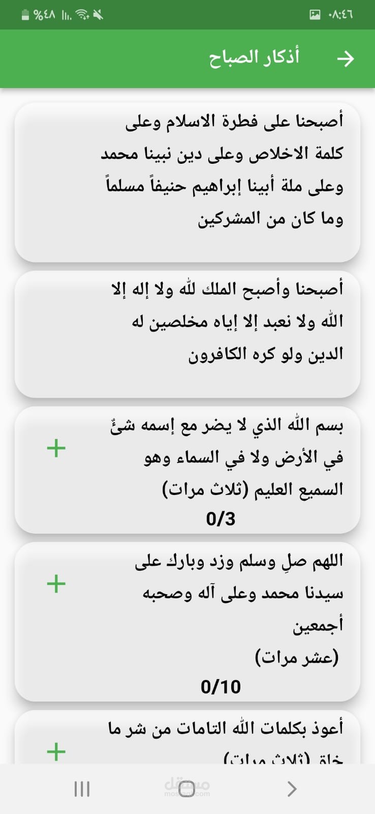 تطبيقك android يمكنك من خلاله قراءة أذكار الصباح والمساء وقراء الادعية و هدفه تذكير المسلم بذكر الله وتحصينه من الشيطان