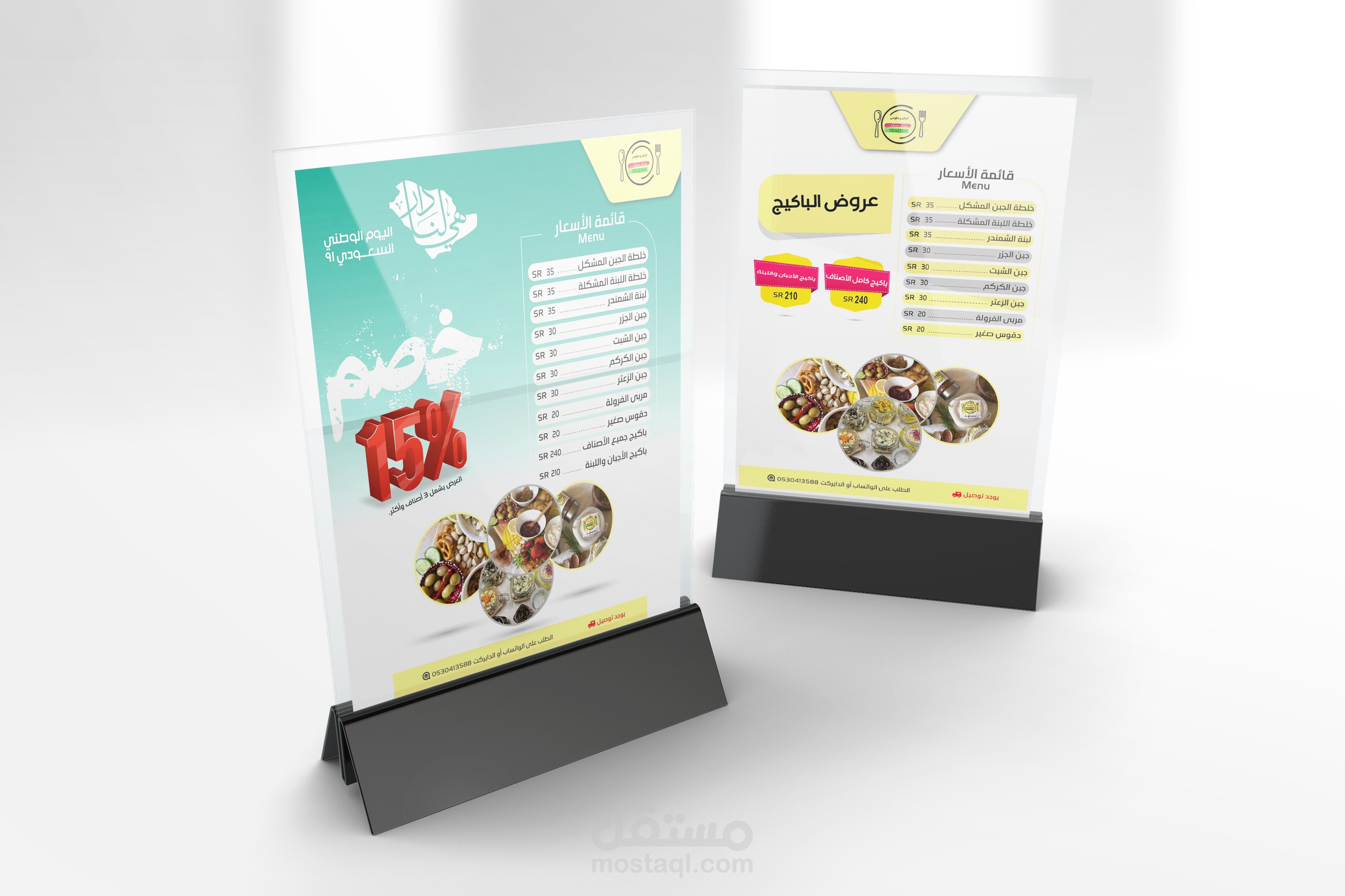 العمل عبارة عن مينيو لمتجر الكتروني لبيع خلطات الأجبان والدقوس وزيت الزيتون