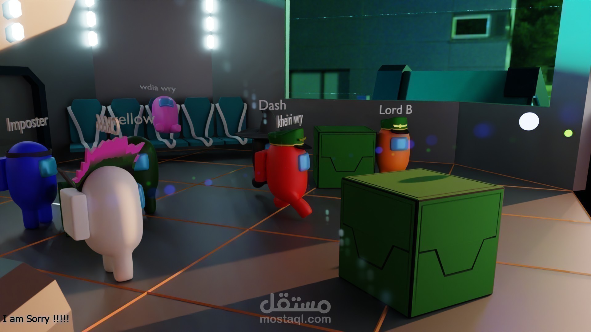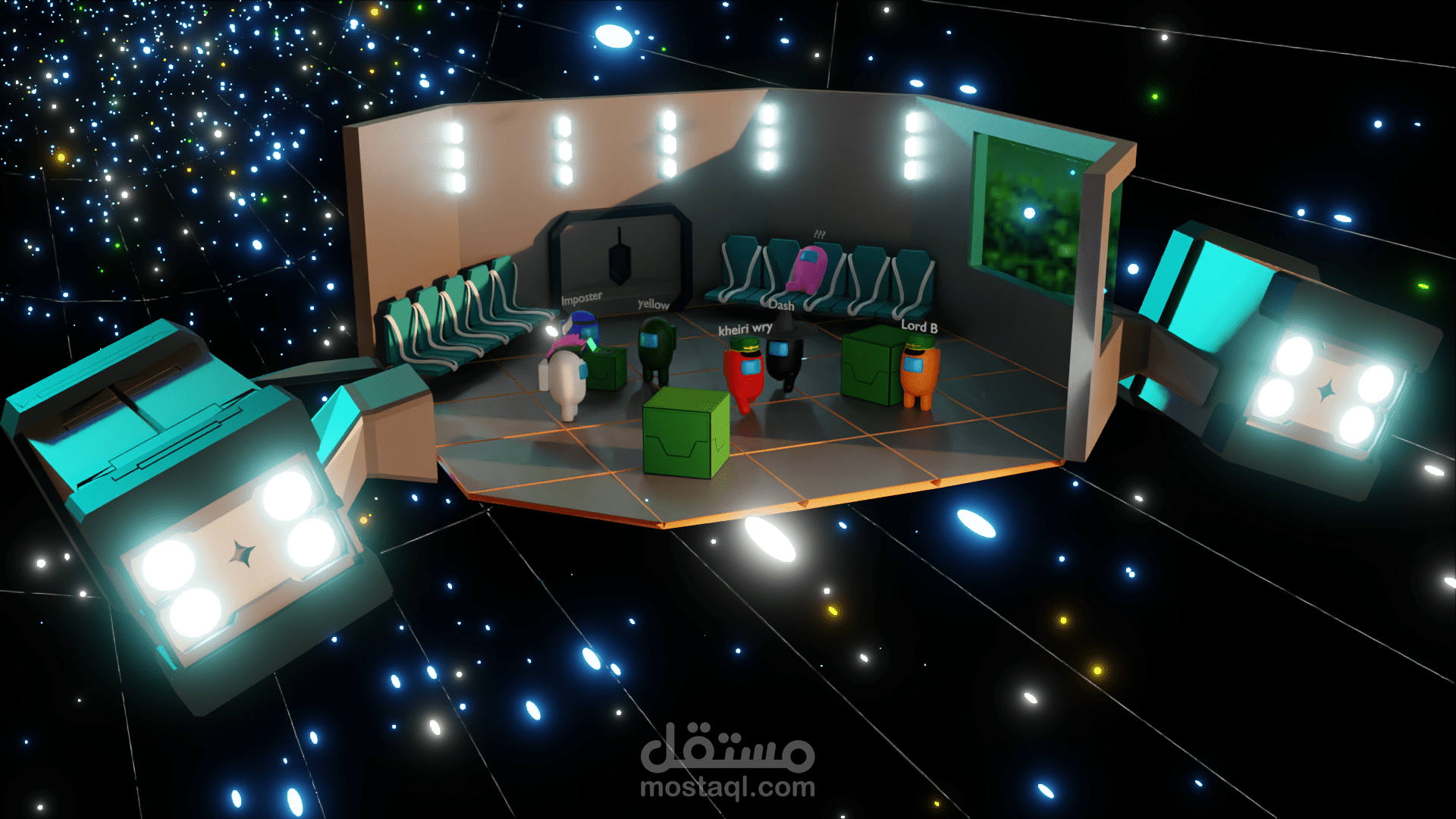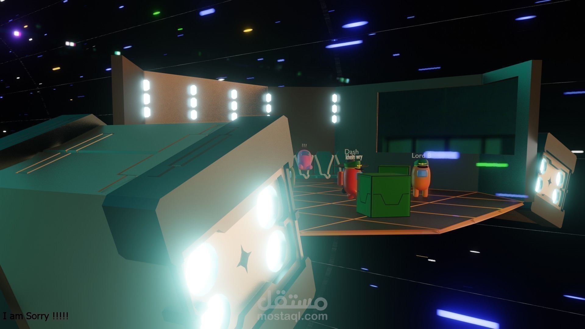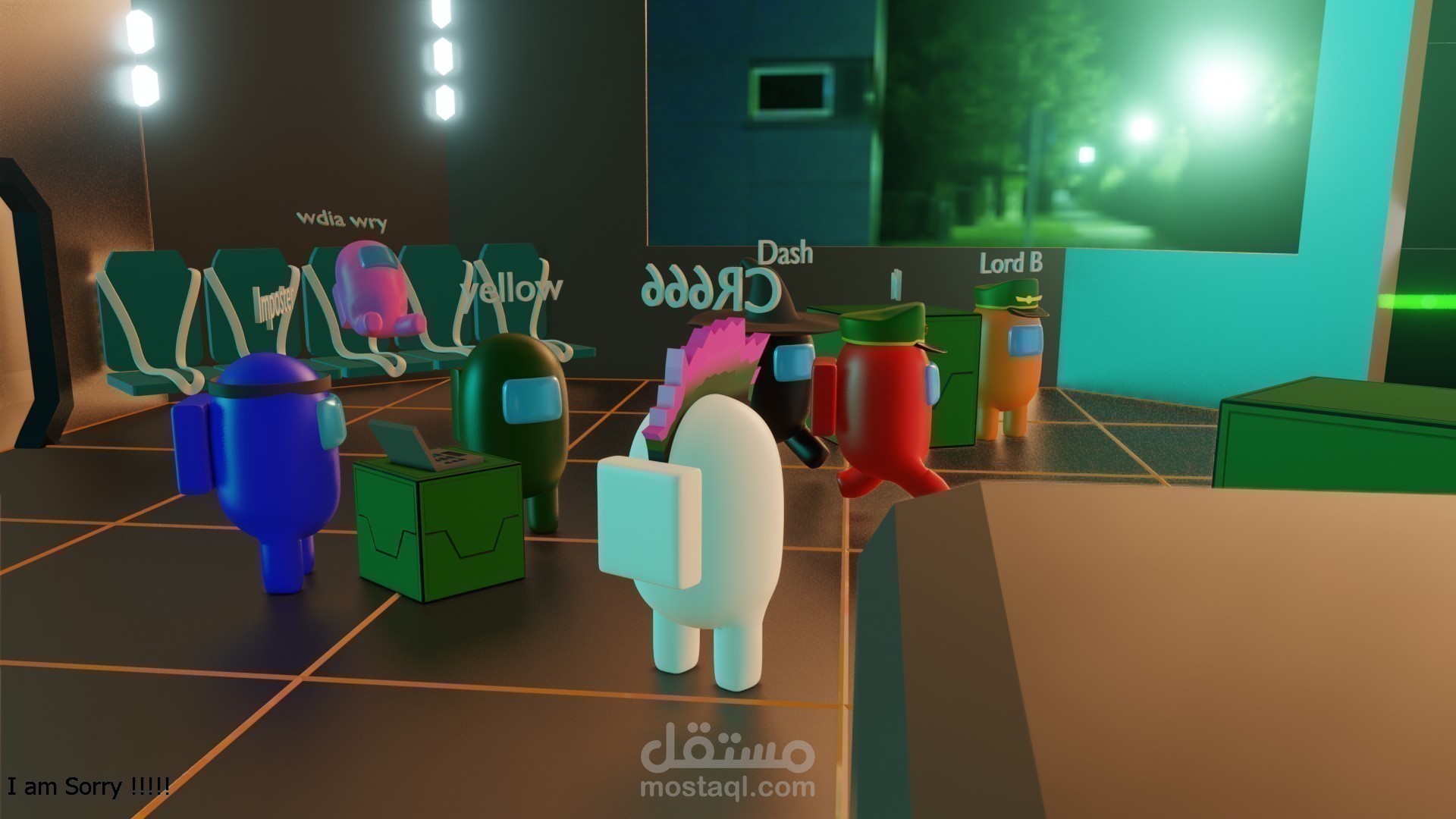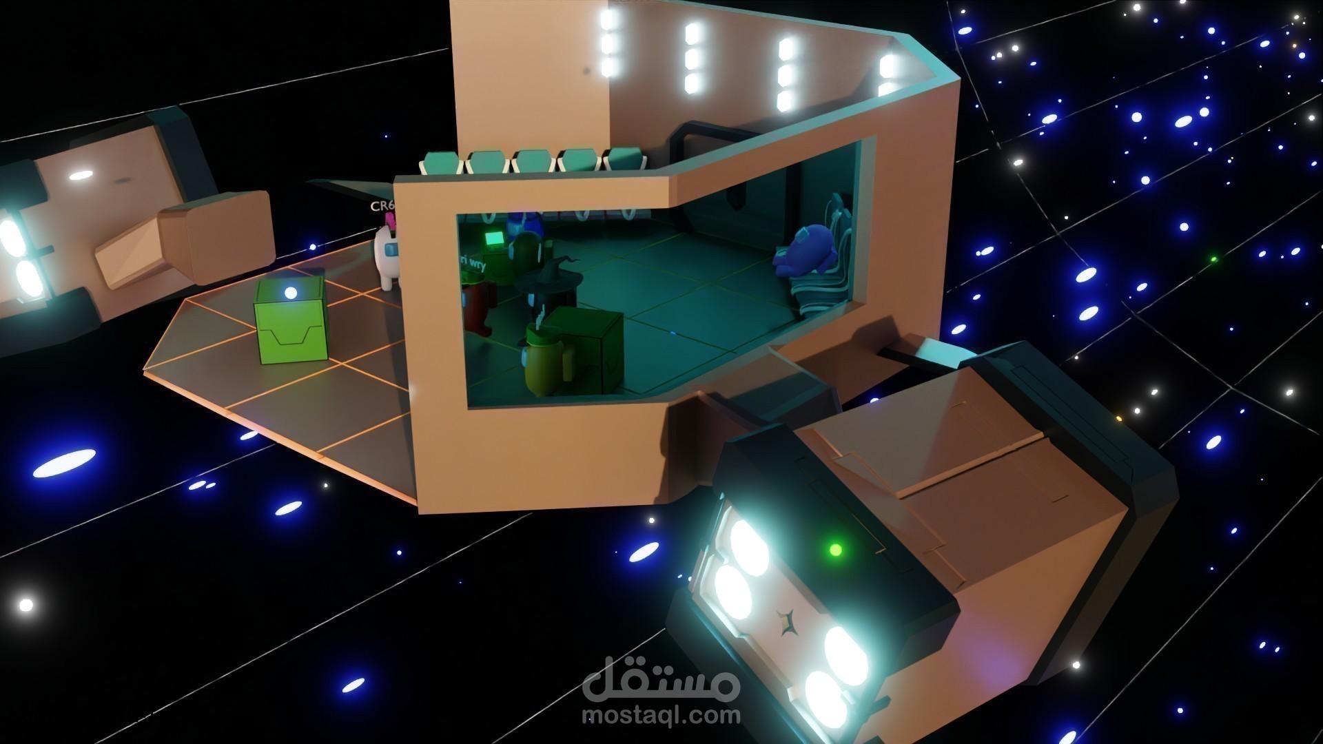 تحويل السيفينة الفضائية من لعبة among us الى تصميم ثلاثي الابعاد يحتوي على تفاصيل وشخصيات اللعبة