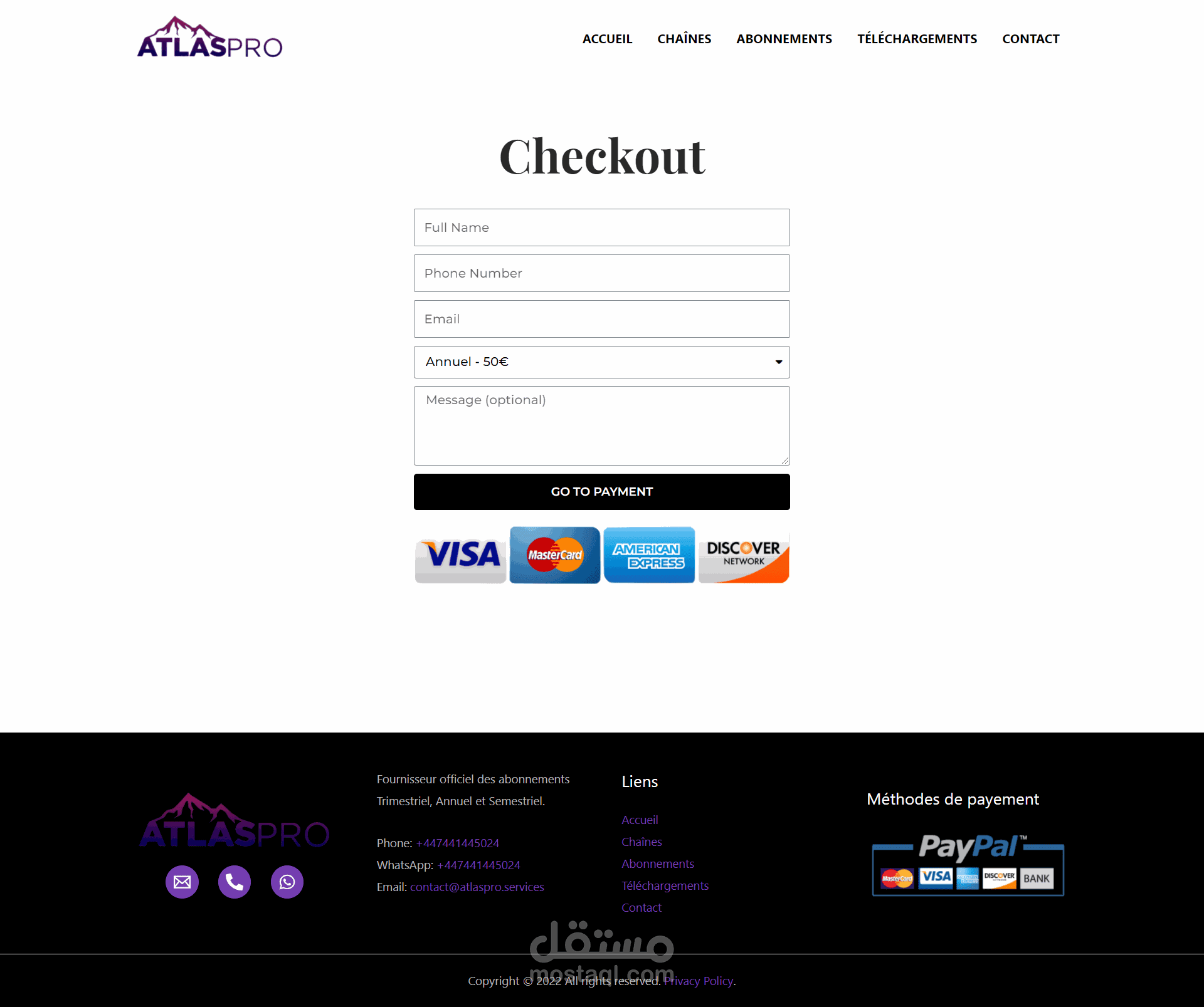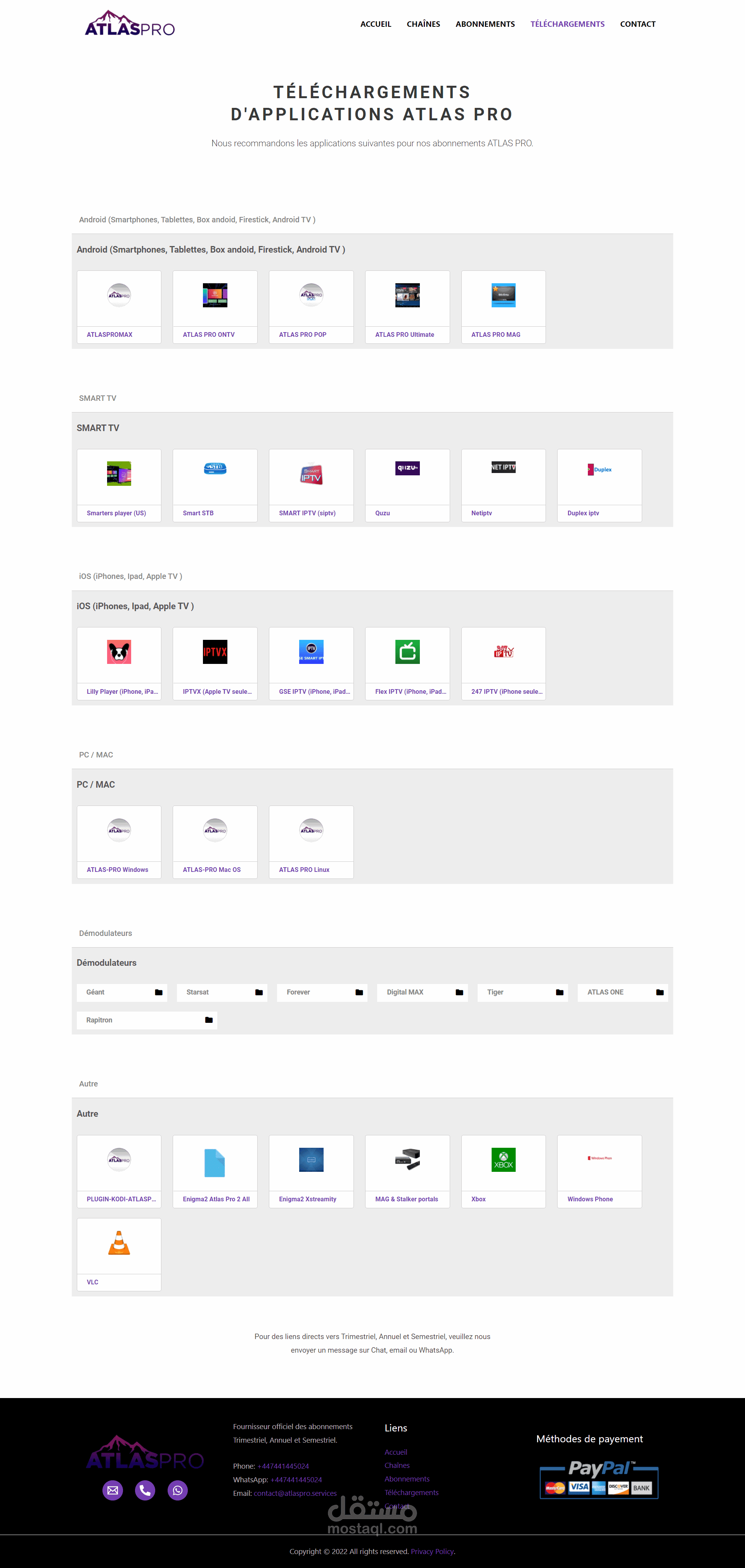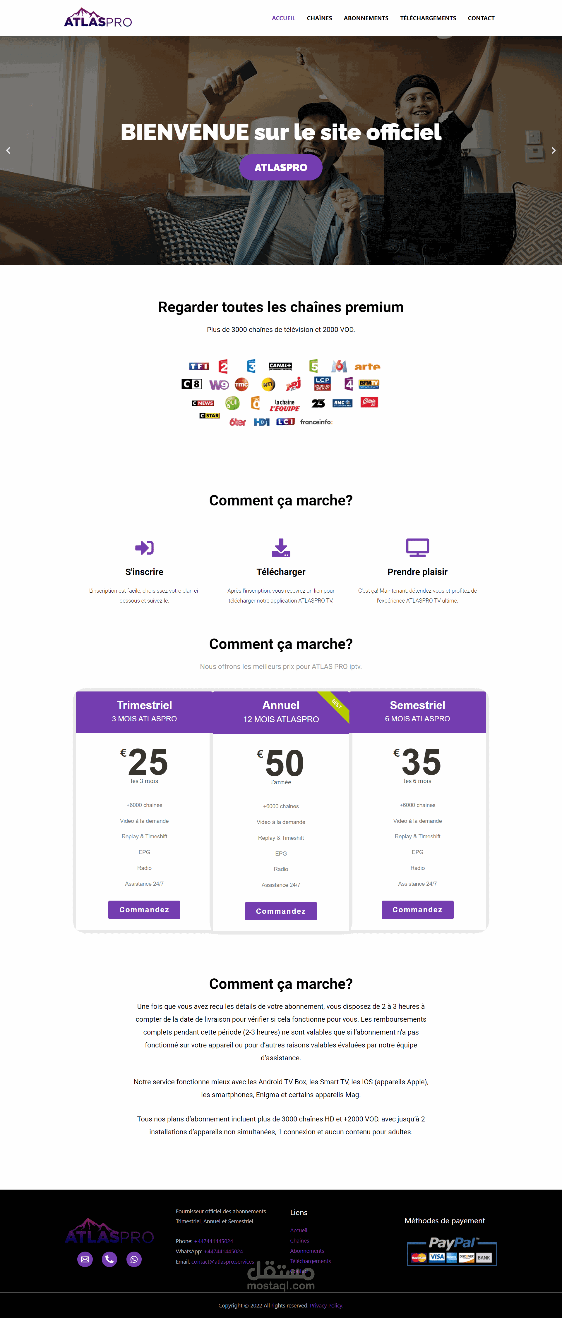 تم تصميم وبرمجة موقع بيع اشتراكات iptv متعدد الباقات والخطط \\ تم تفعيل نظام الدفع باستخدام الكريدت كارد باستخدام شركة stripe