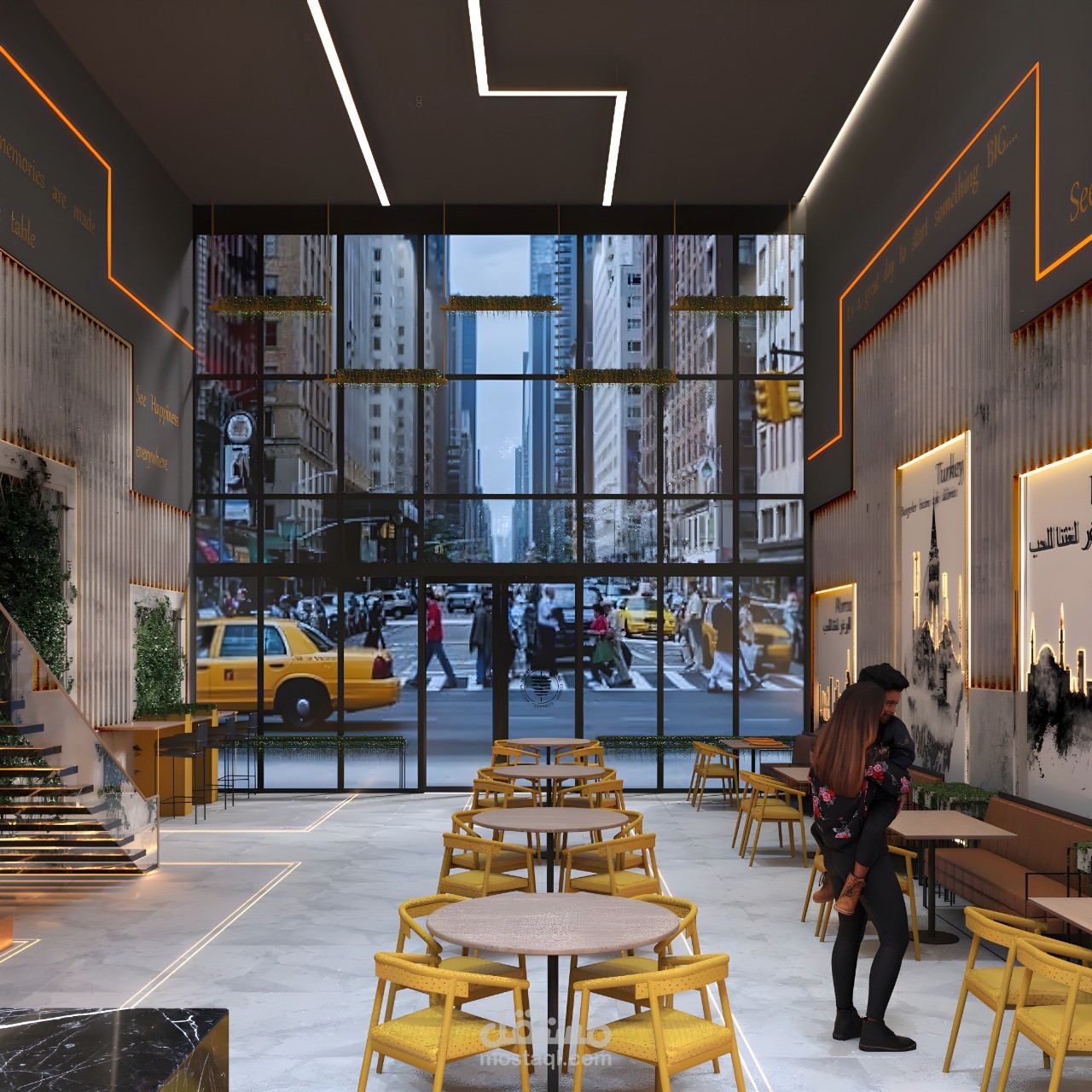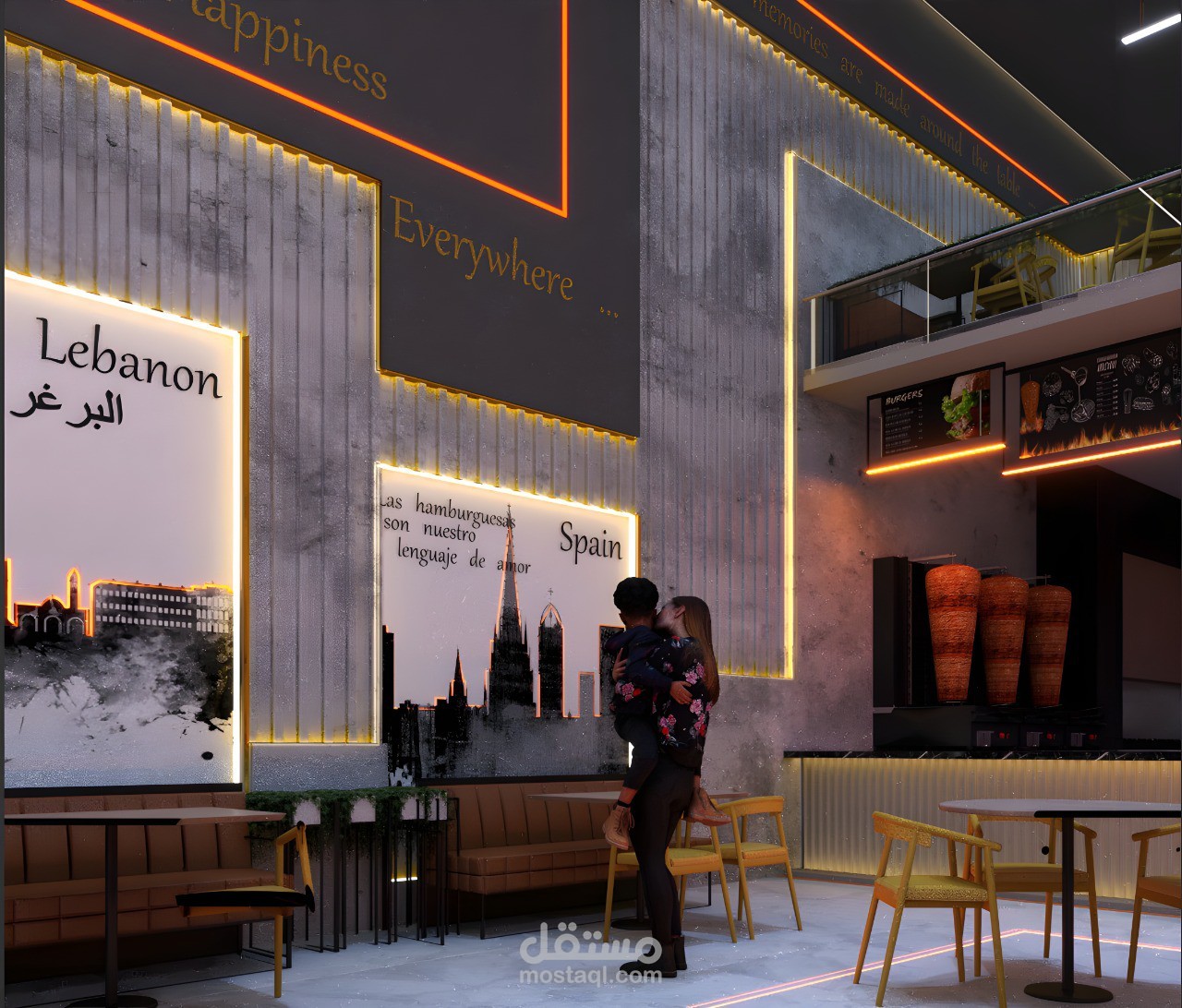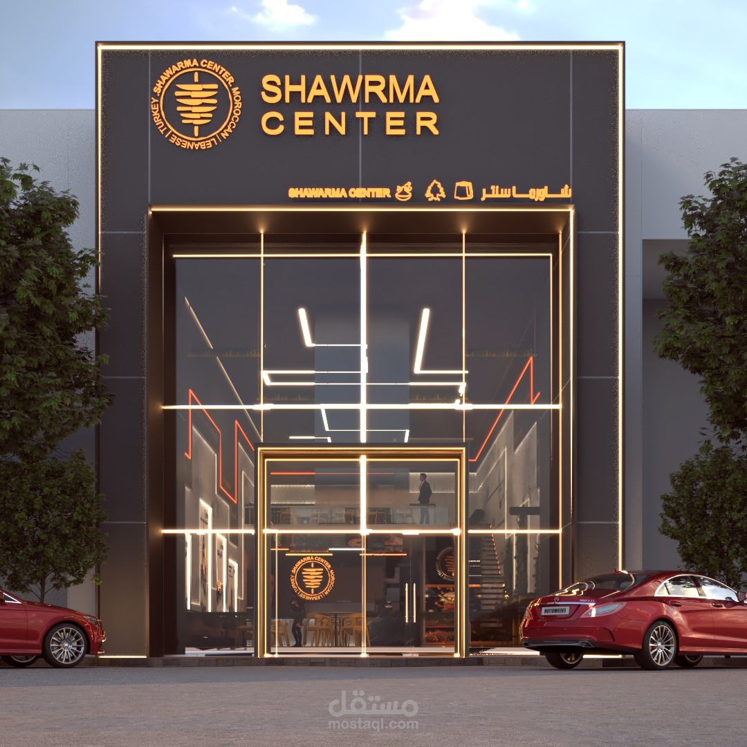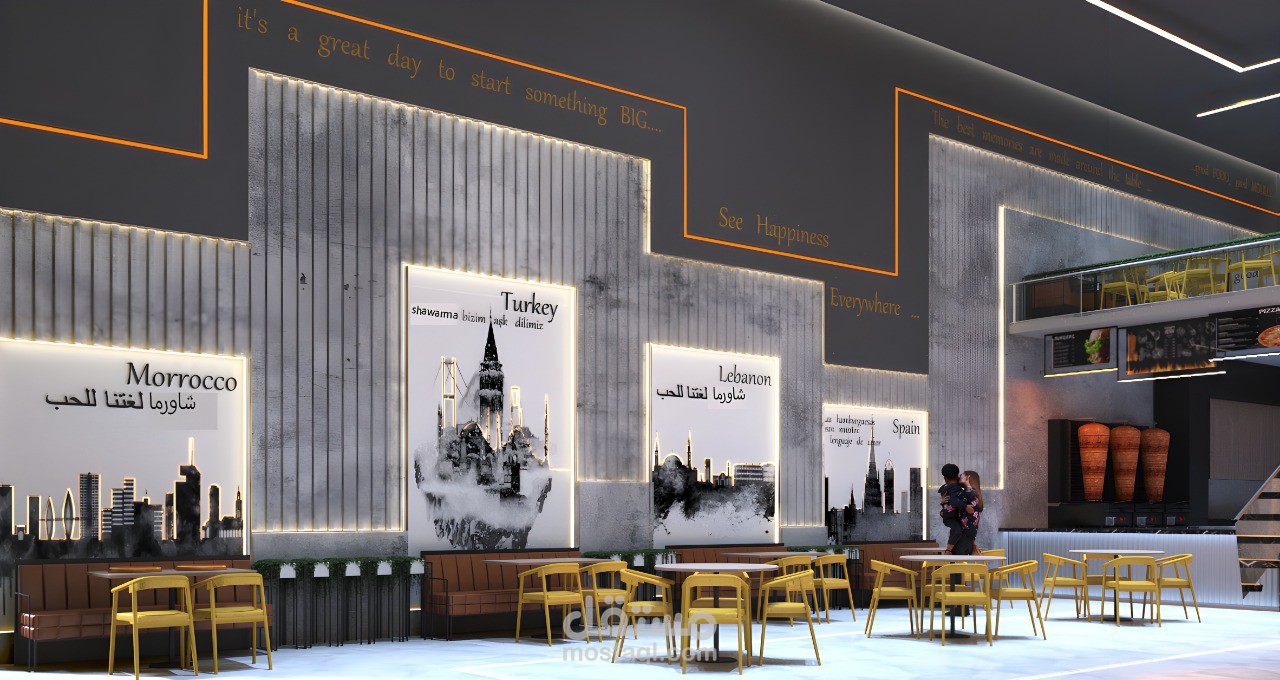 تصميم داخلي و خارجي لمطعم شاورما سنتر _الفرع الثاني_السعودية بطراز مودرن