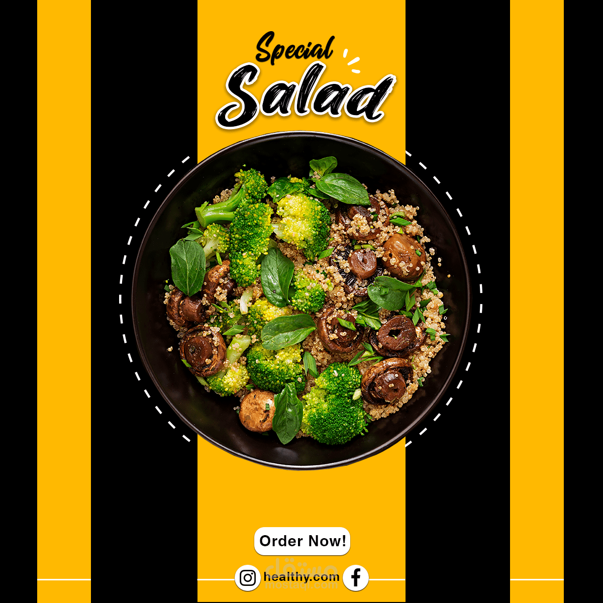 تصاميم سوشيال ميديا باستخدام برنامج إليستريتور مع مراعاة توزيع العناصر وباقي أسس التصميم.