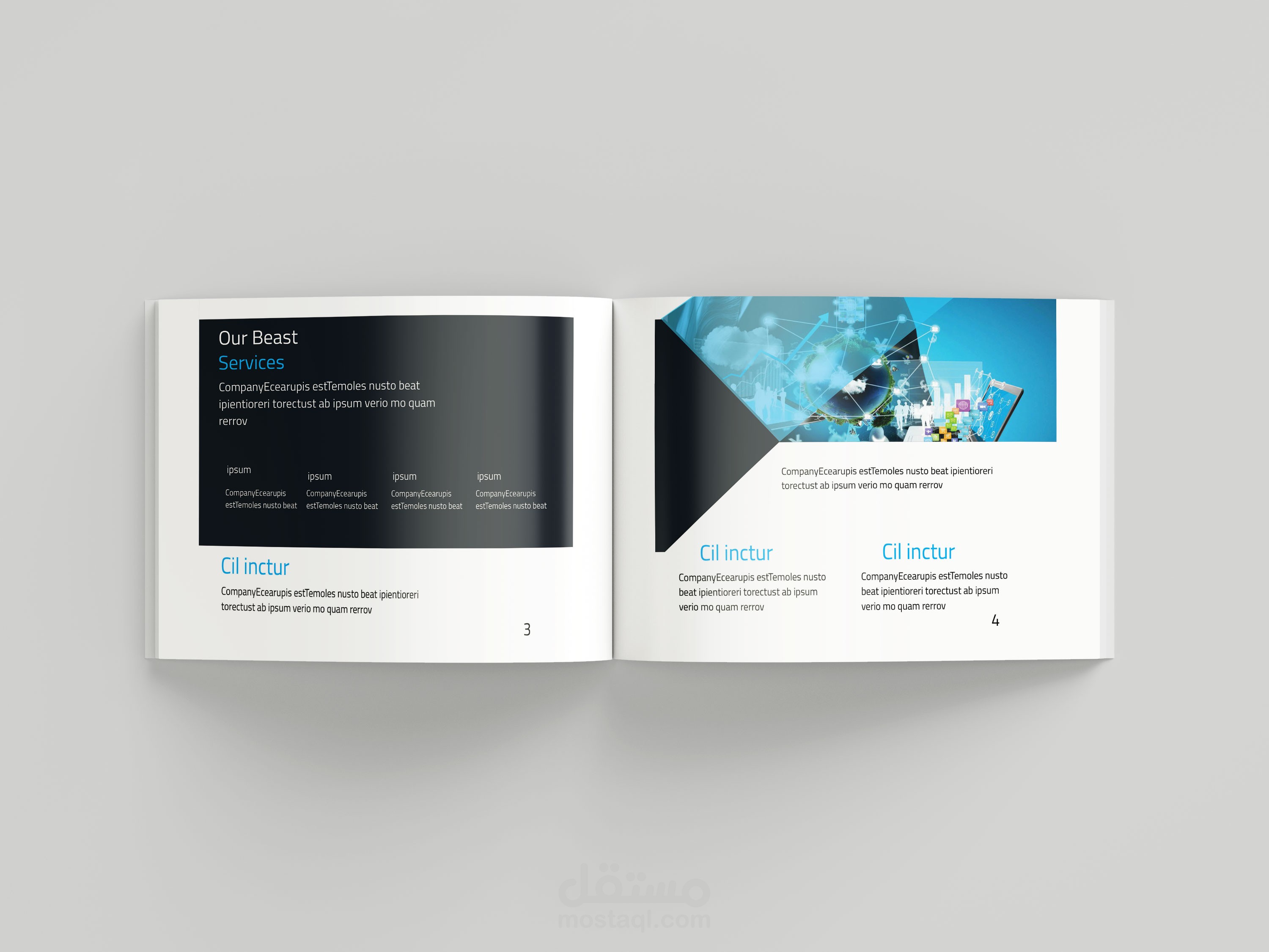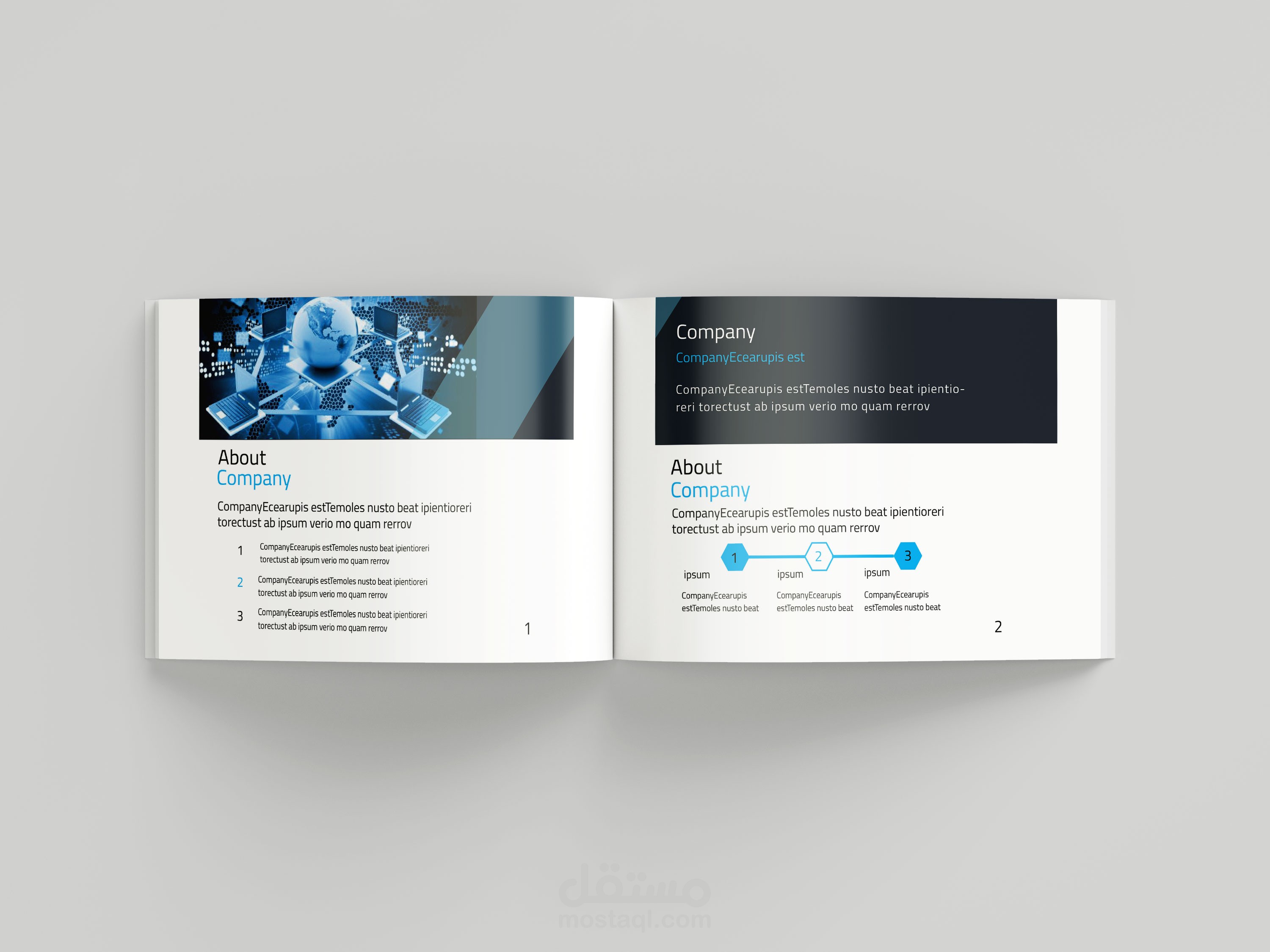 أقوم بتصميم ملف تعريفي خاص بالشركة ويمكن اخراجه باللغة الإنجليزية والعربية