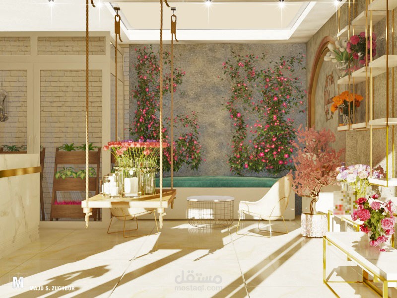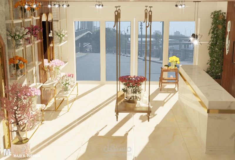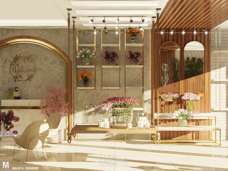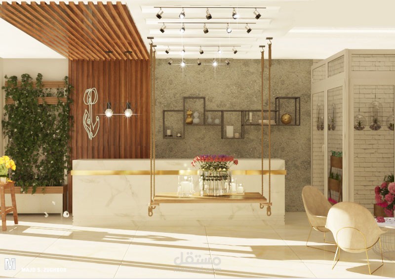تم تصميم المحل وعمل ركن للضيافة قهوة اكسبريس لاستقبال الزبائن ،