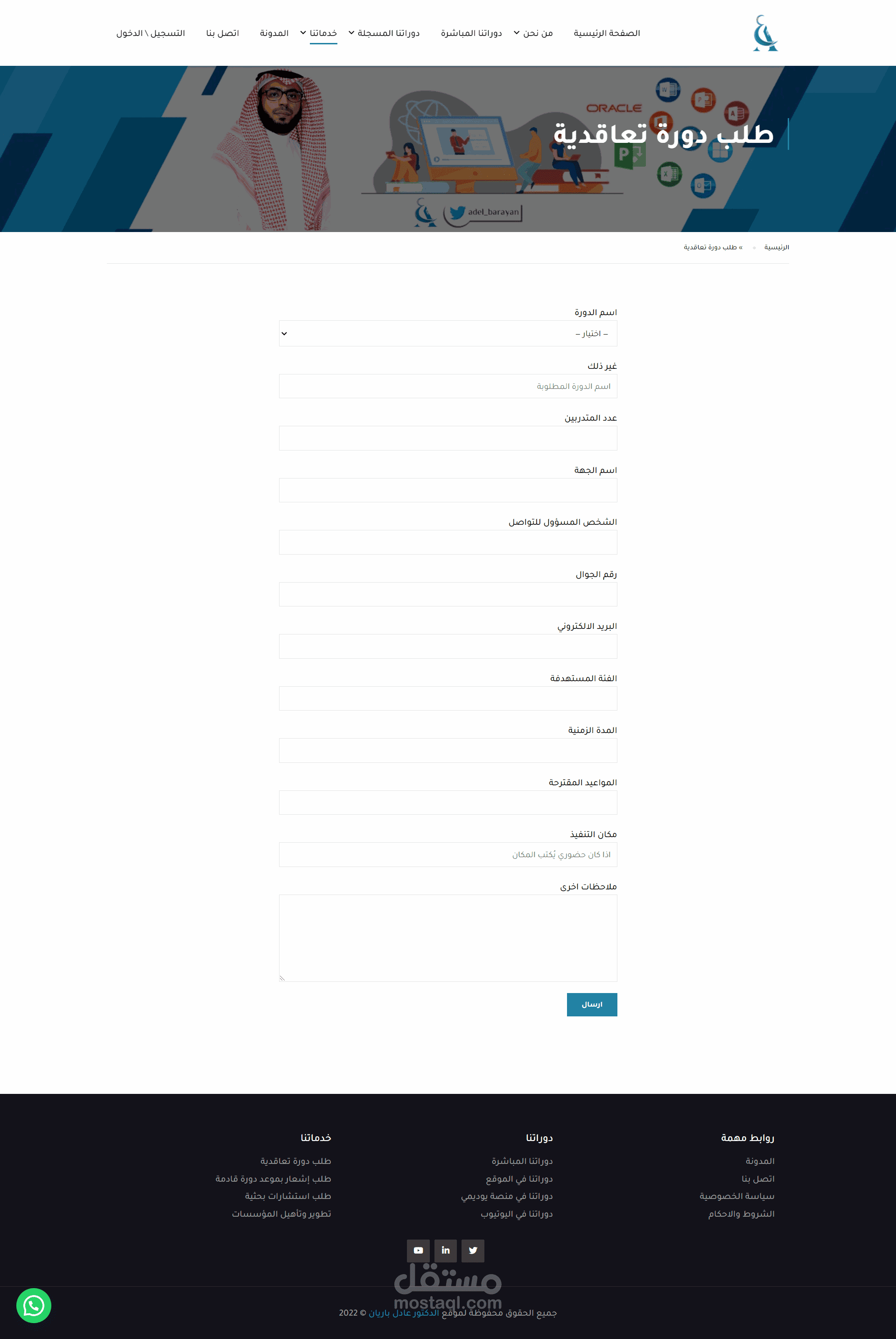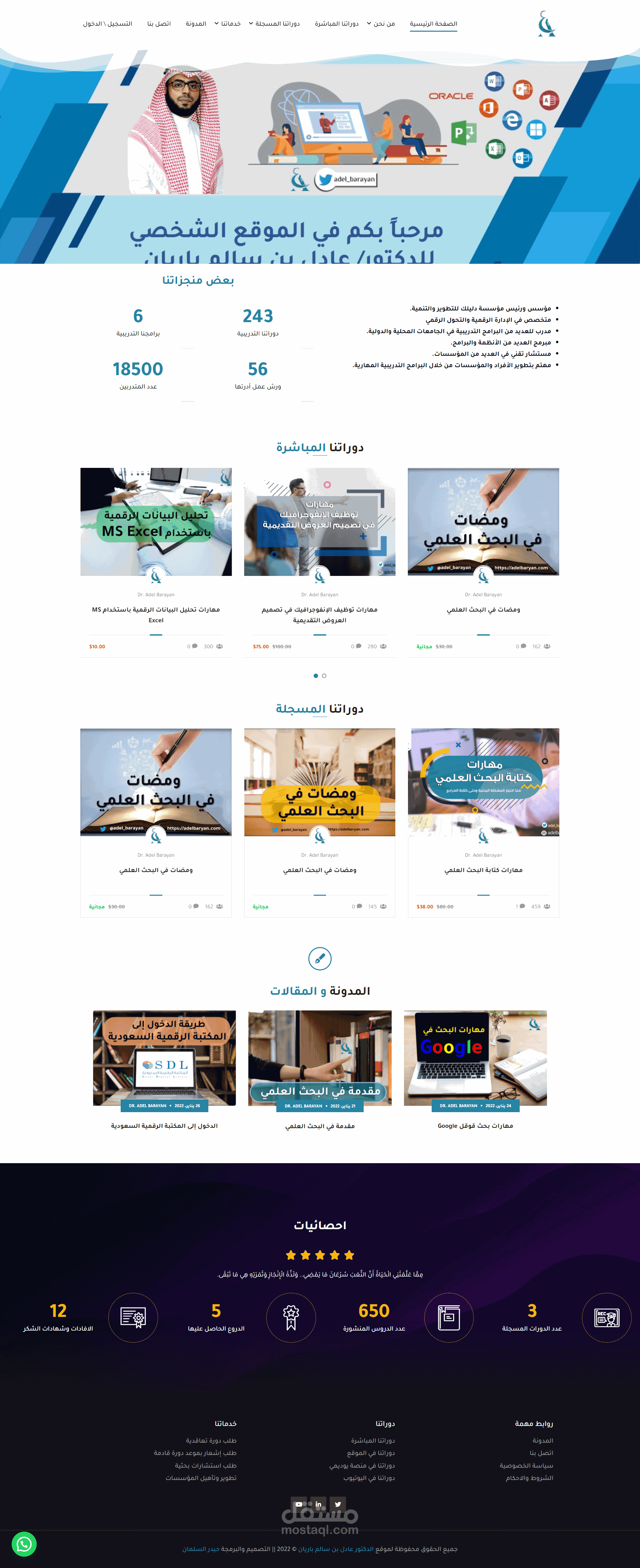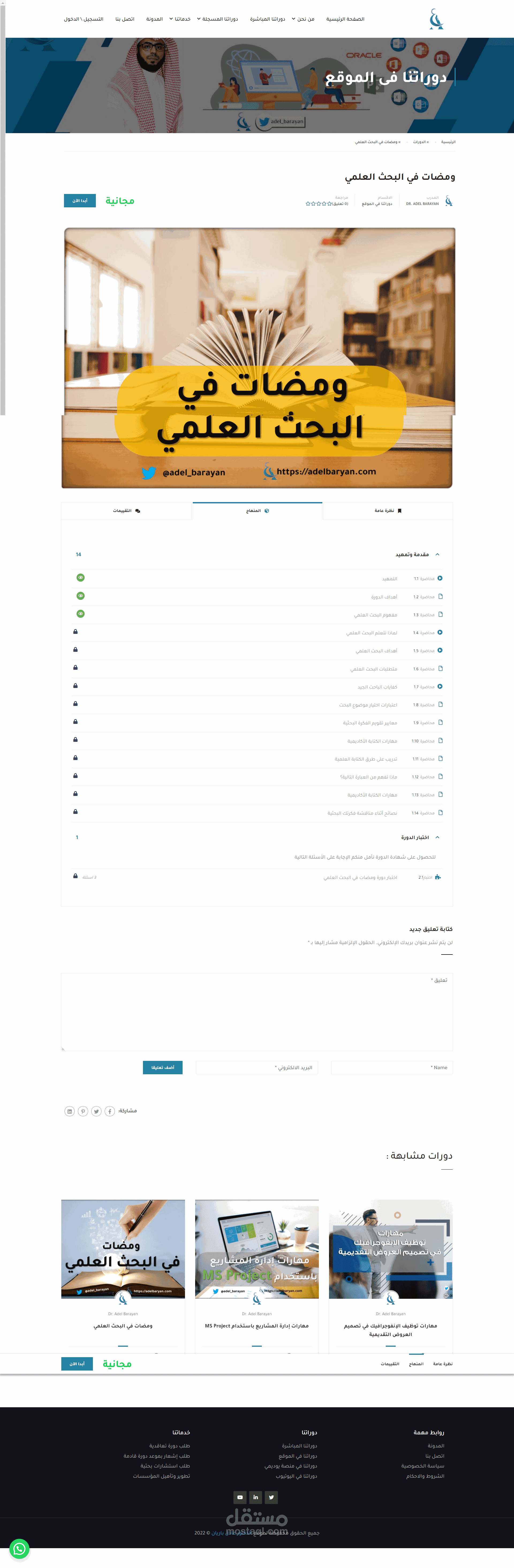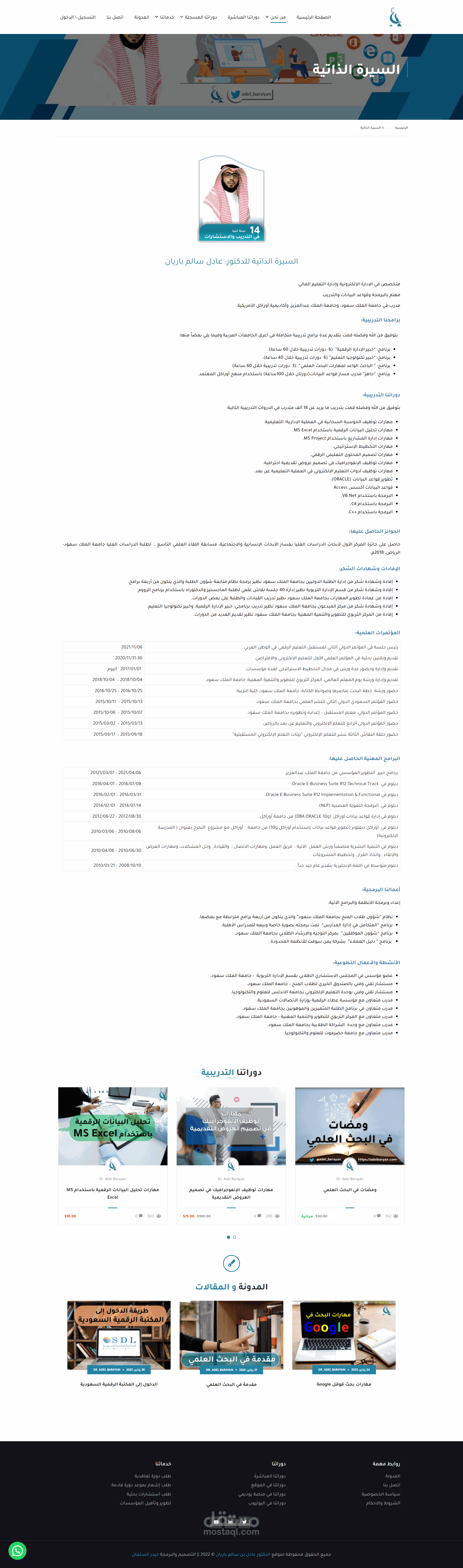 موقع دورات ومدونة للمدرب السعودي الدكتور عادل بن سالم باريان، طلب وحجز الدورات اونلاين وطرق دفع اونلاين، انشاء دورات اونلاين عبر الميتنغ Zoom داخل الموقع.