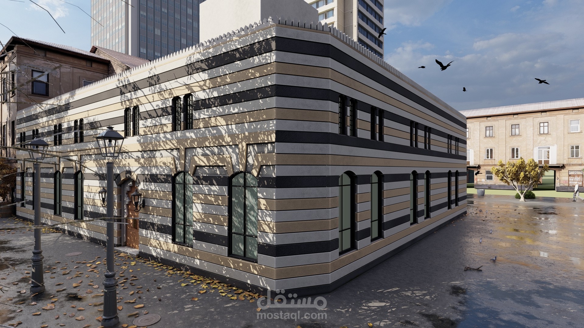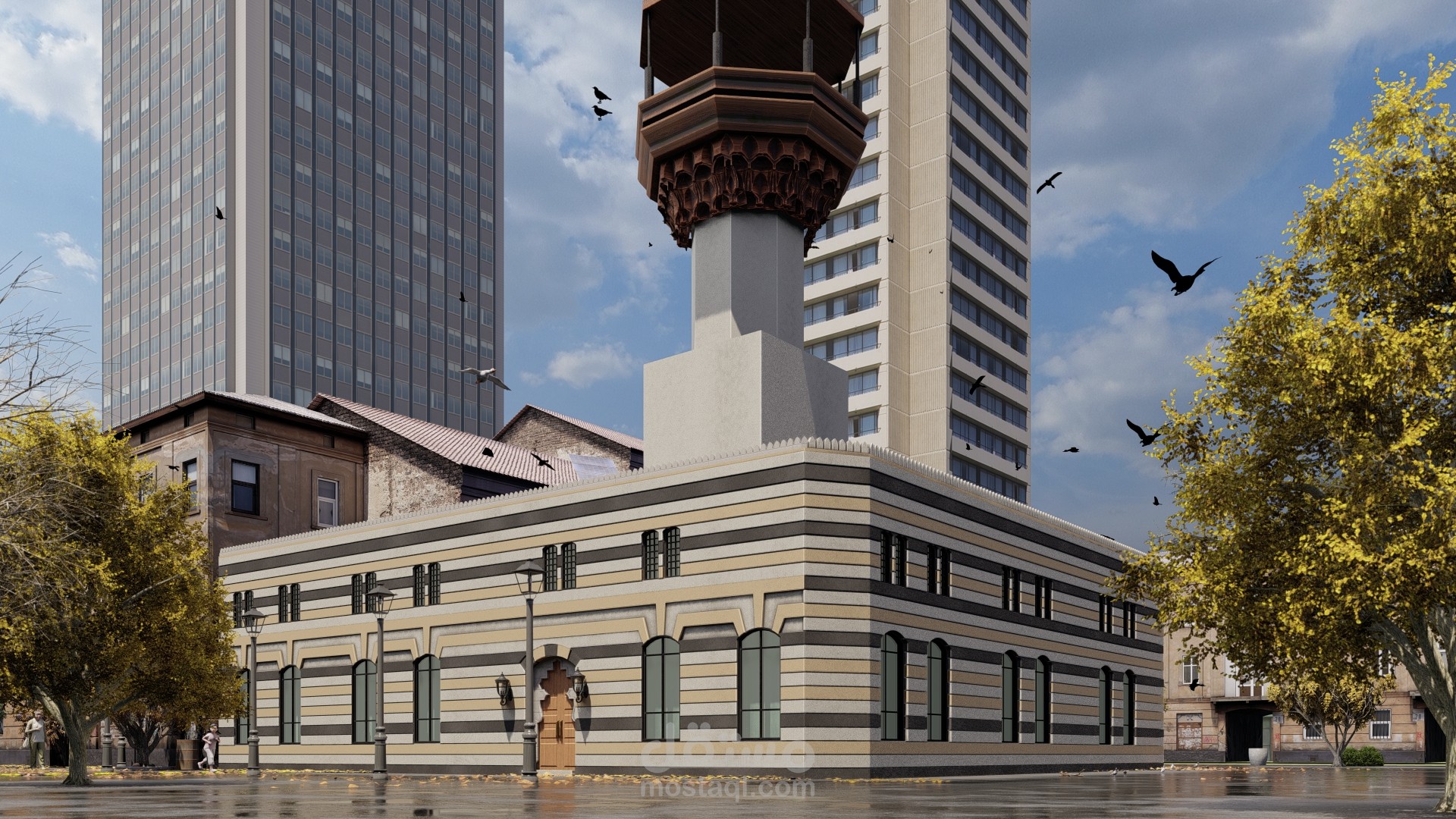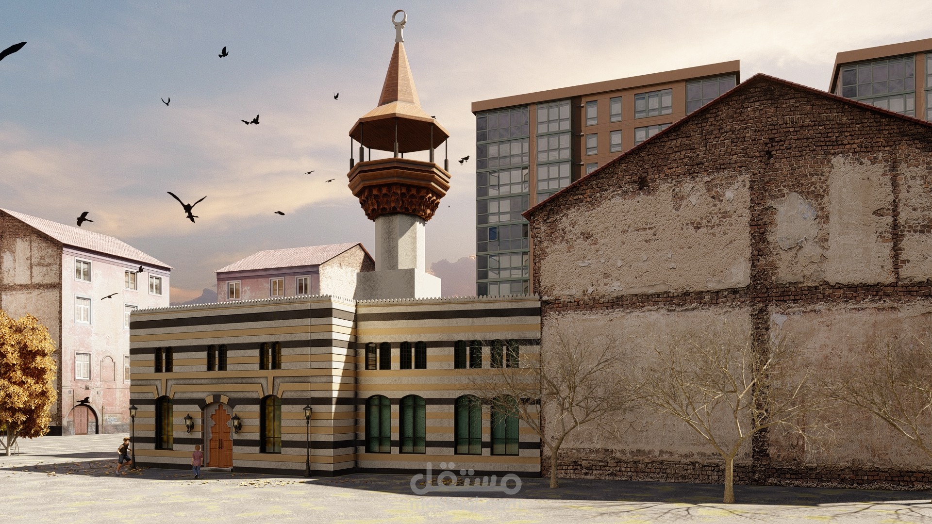 ترميم جامع أثري في شارع الثورة قبل و بعد ...