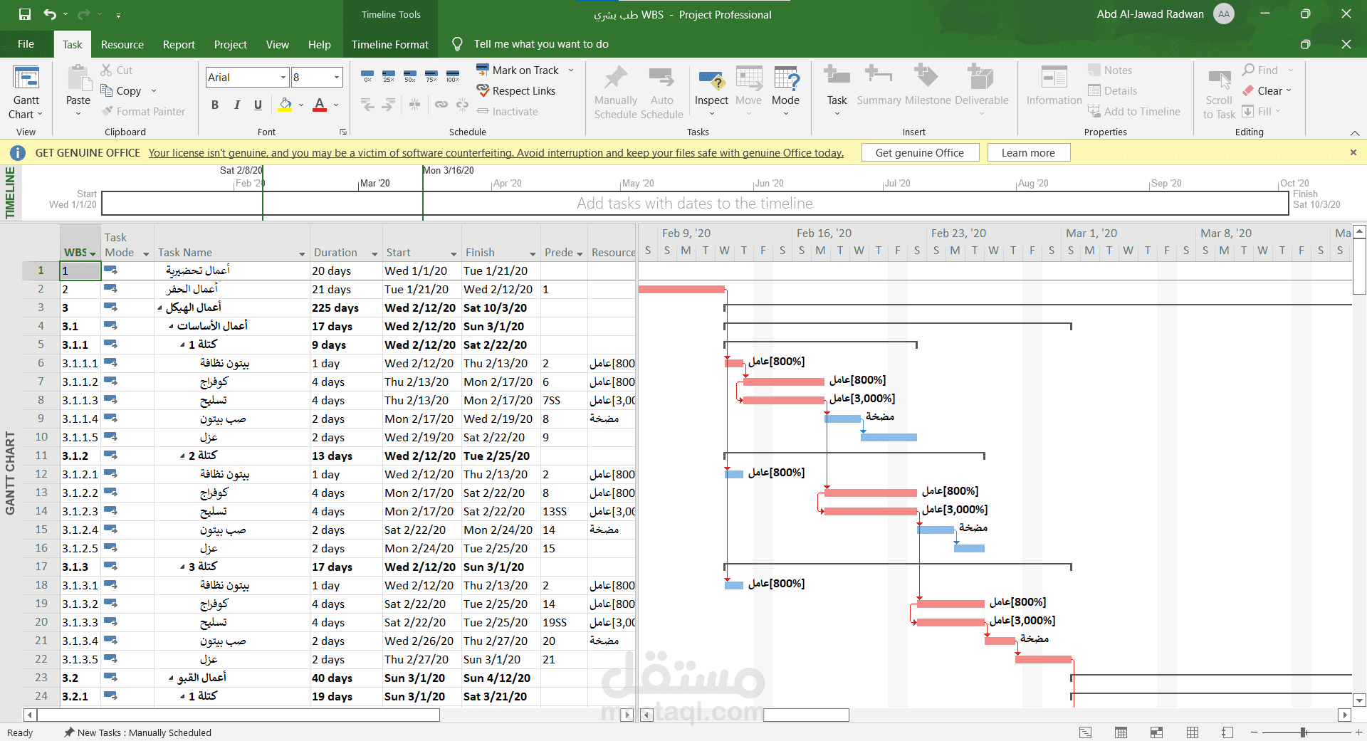 AutoCAD ومن ثم تم تنفيذ النموذج على برنامج Revit وتم وضع جدول زمني له من خلال برنامج MS Project