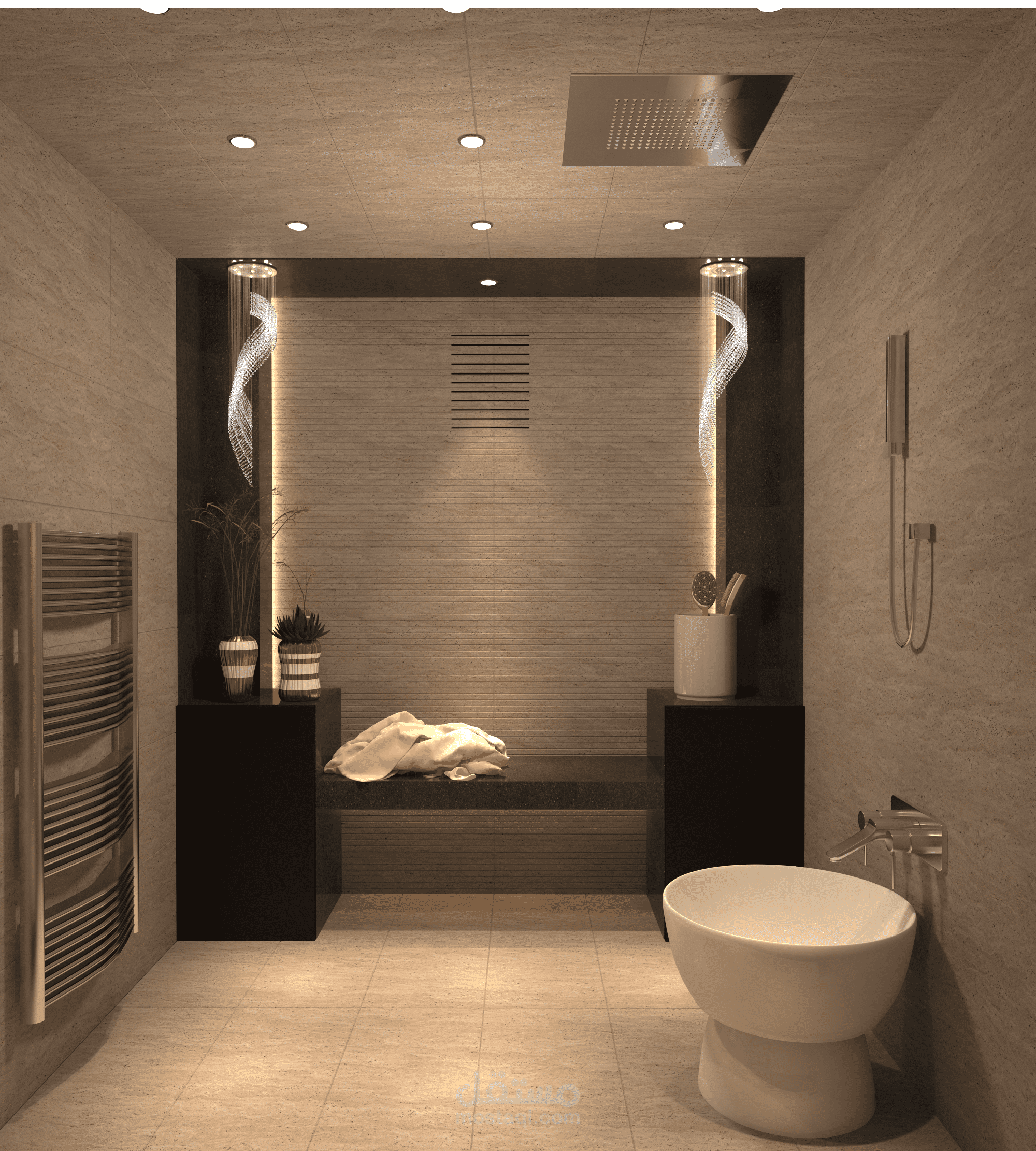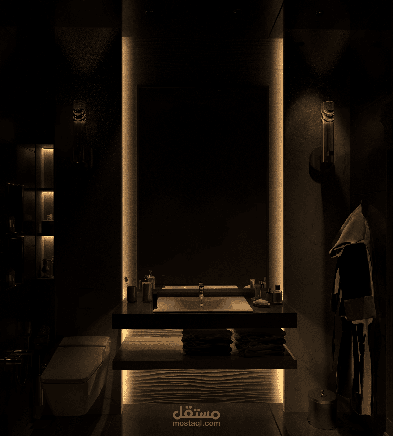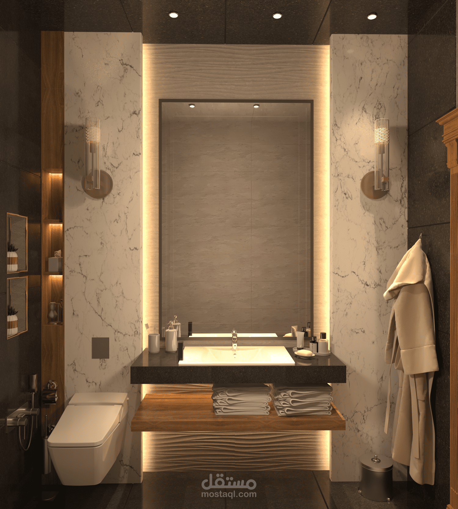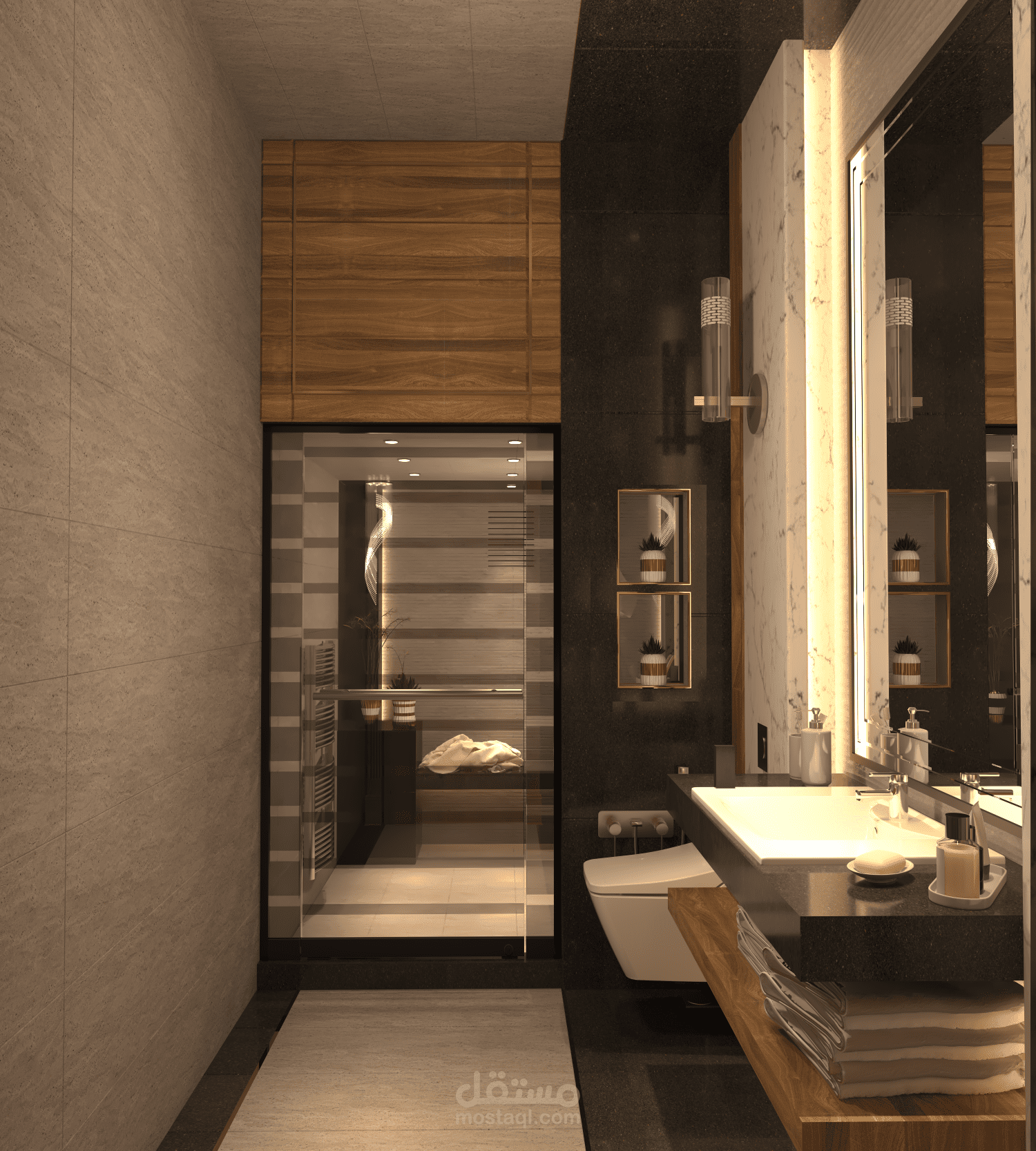 تصميم حمام منزل حيث تم اخذ الابعاد على العظم (بدون اكساء) وتمت دراسة كافة التفاصيل والجوانب والتمديدات مع تزويد العميل بمخطط الصحية والكهرباء