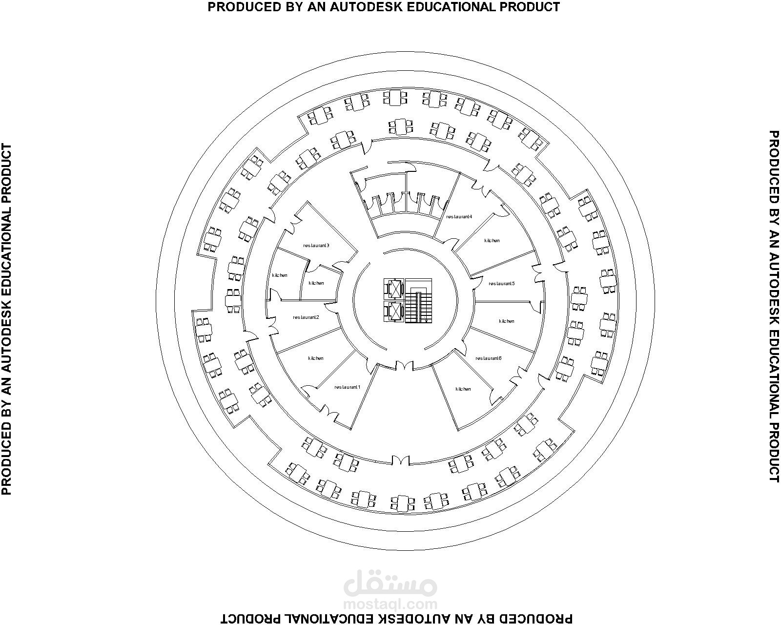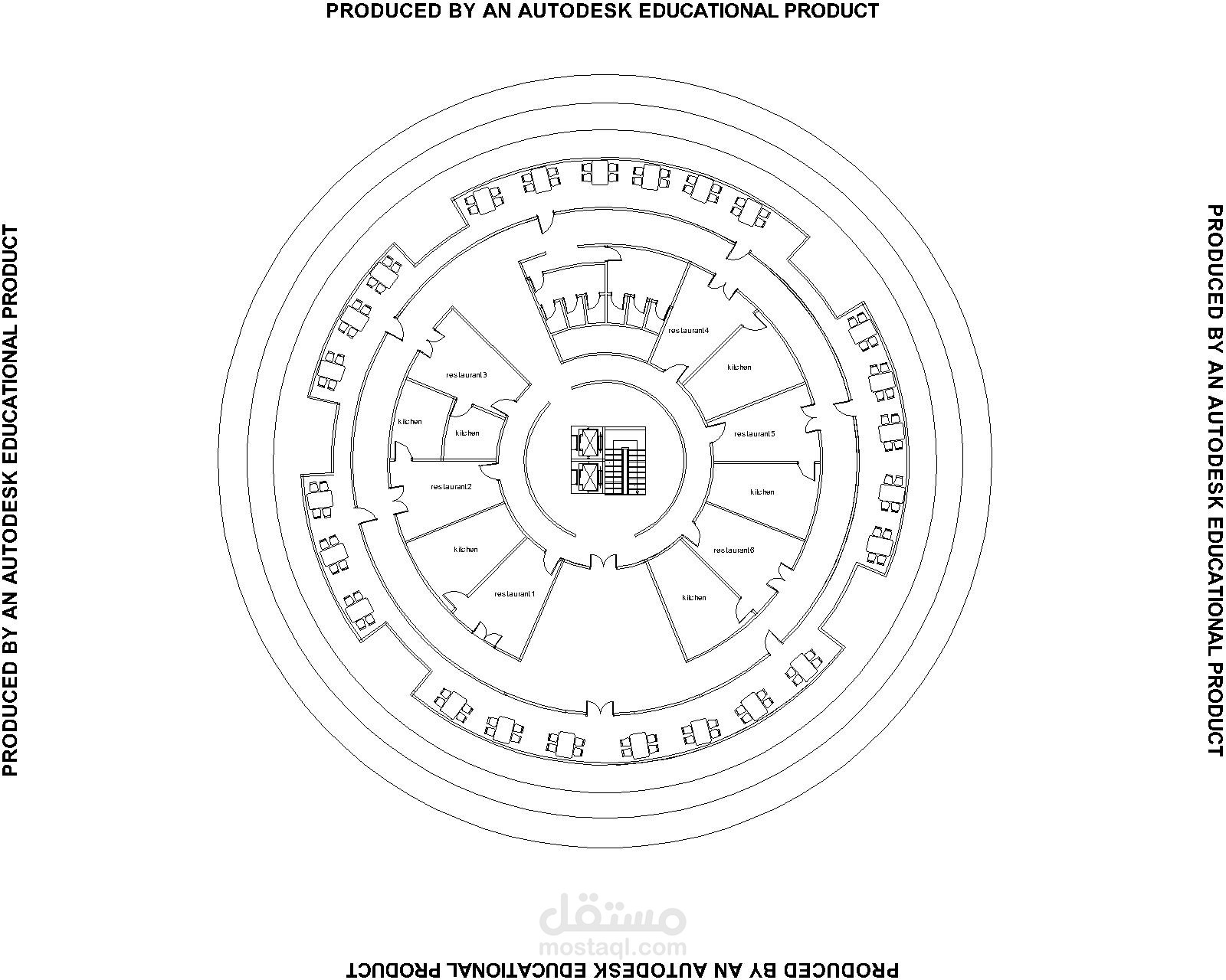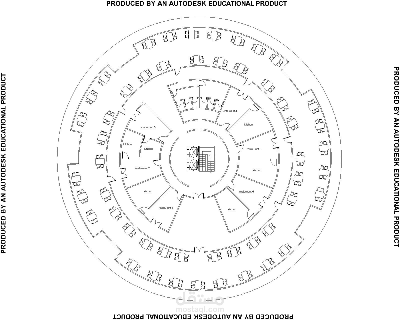 تصميم مسقط افقي لمطعم جبلي مع توضيحه بالقطاعات