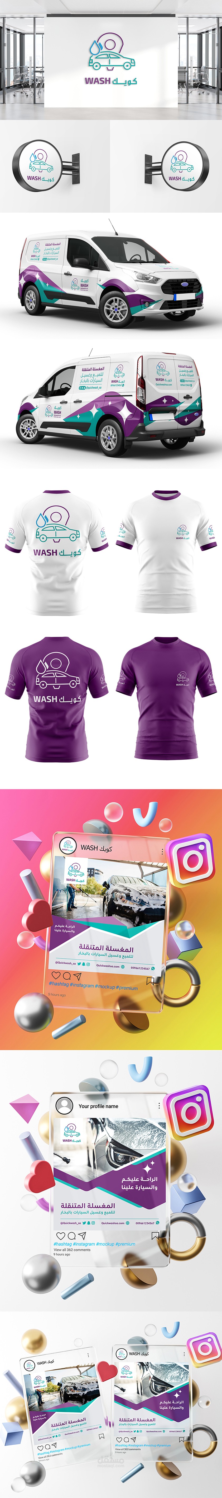 تصميم شعار مميز لصاحب مشروع غسيل سيارات متنقل في السعودية، وعمل بنود من الهوية البصرية مثل اللوحة، ستيكر سيارة، تصميم تيشيرت لملابس العمل، تصميم بوستات للنشر عبر السوشيال ميديا.