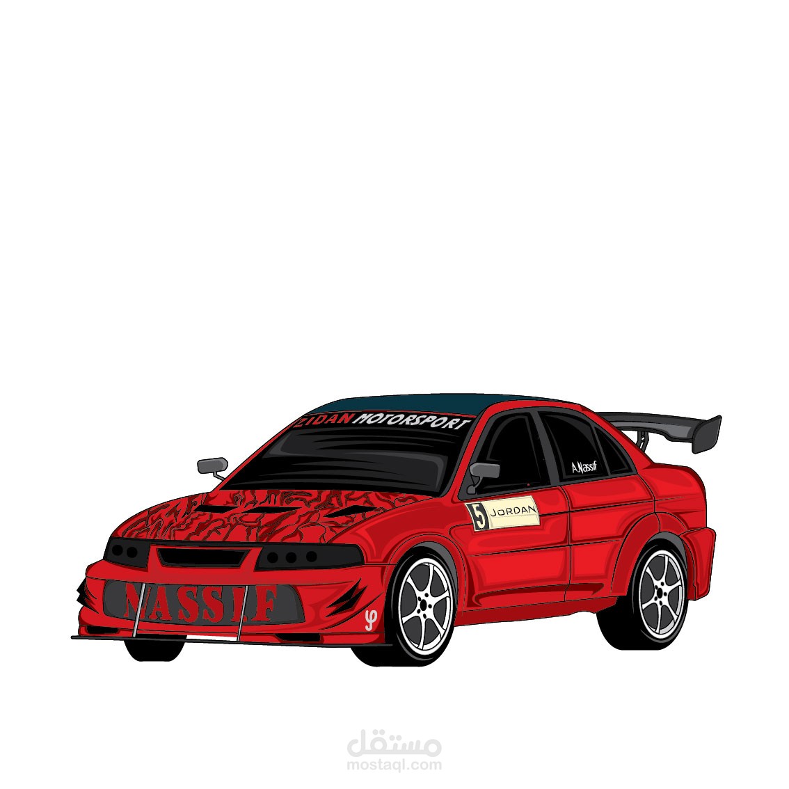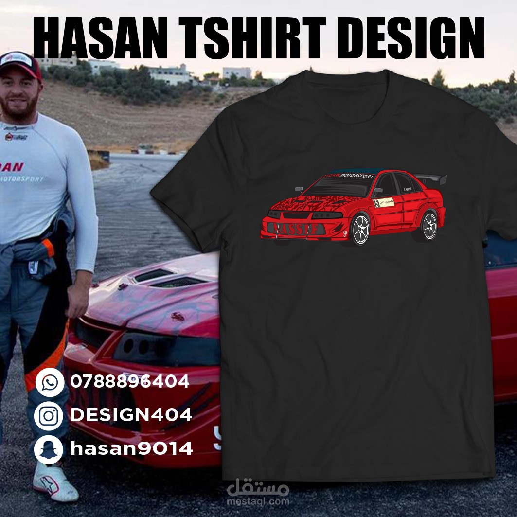 رسم لسيارة بطل الرالي الأردني أمير نصيف, تمت طباعة السيارة على تيشرتات الفريق