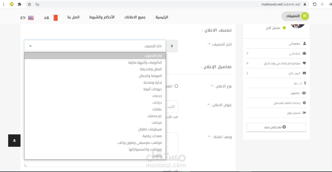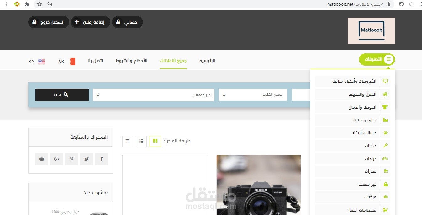 تم بحمد الله انشاء موقع خاص بالاعلانات المبوبة وهو موقع مطلوب بامكان اي شخص القيام بالتسجيل فيه والحصول على لوحة تحكم خاصة به يقوم من خلالها بنشر اعلاناته المطلوبة حسب ما يريد وعلى نفس طريقة موقع حراج