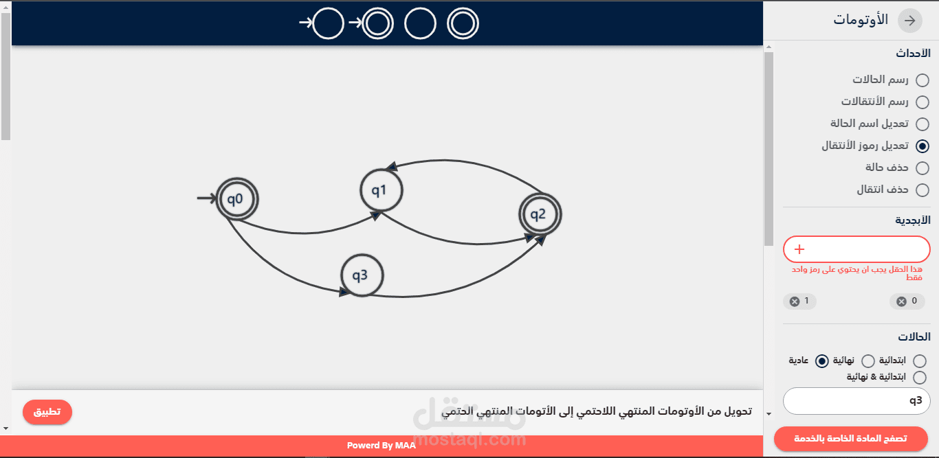 An alternative platform for university education to study the state of automata and grammar models with their interactive tests.