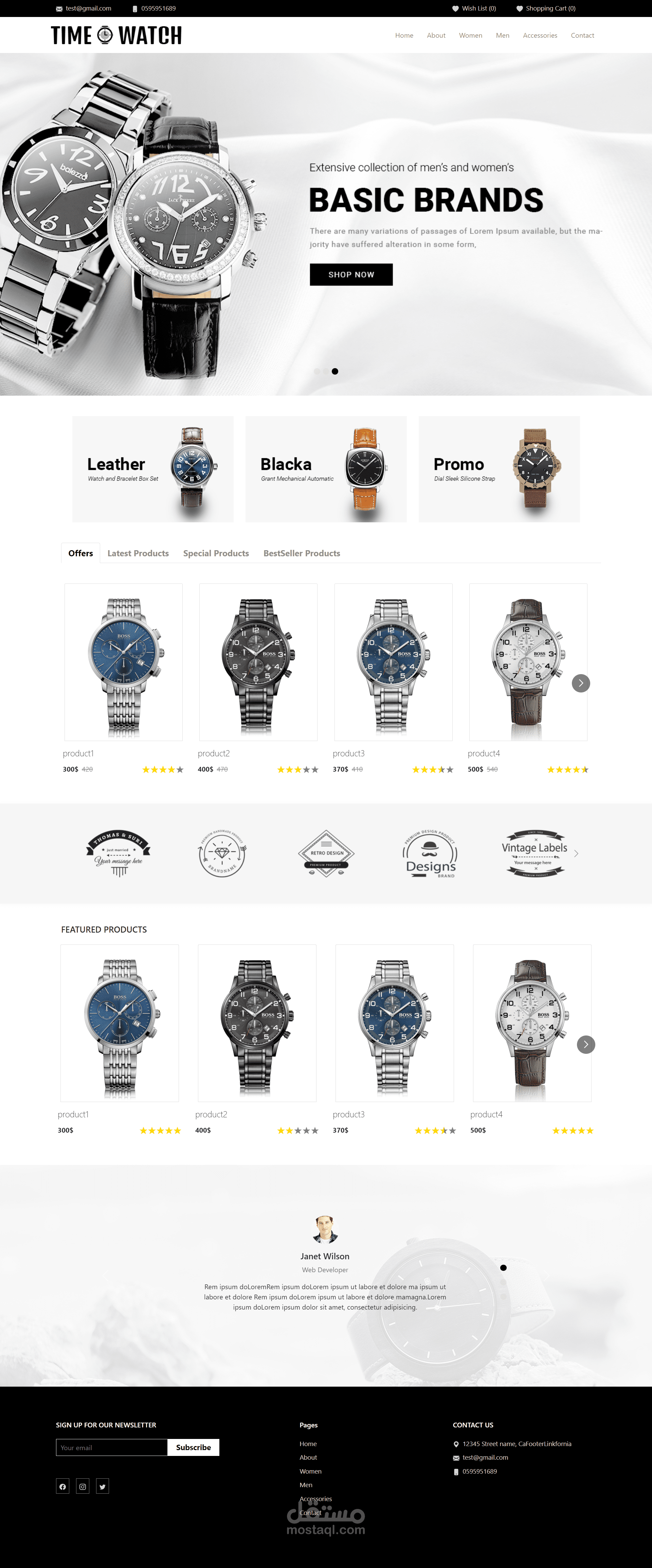 قالب متجر ساعات تم بناؤه باستخدام: ReactJs, react-bootstrap, redux, CSS
