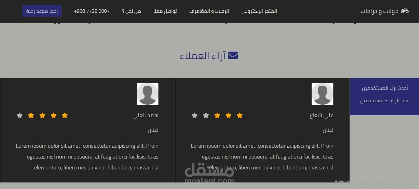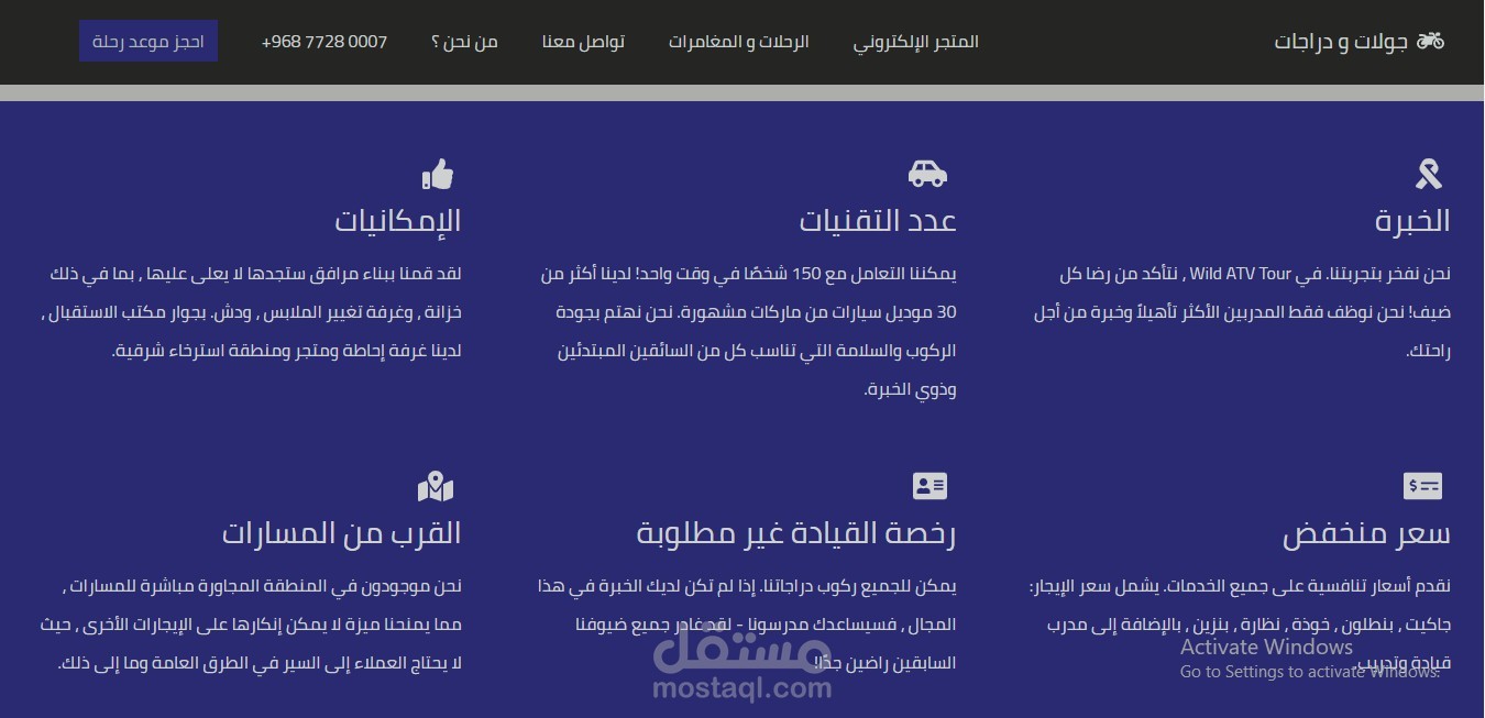 قمت بعمل هذا المشروع لاحد العملاء بعد ان طلب مني مشروعا من اجل حجز رحلاته من قبل الزبائن , و يتضمن الموقع ايضا متجر الكتروني لبيع قطع غيار و اكسسوارات للدراجات النارية