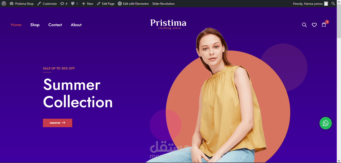 Pristima shop احد الاعمال الخاصة بى التى قمت بانجازها فى مدة لا تزيد عن 10 ايام, الموقع خاص بى متجر ملابس يتواجد فى المغرب و قمت بانجاز العمل بستعمال الووردبريس WordPress و الووكوميرسwoocomerce و قد تم تسليمى هادا العمل لى انجازه من احد الشركات التى اقوم ء بتطوير مواقع الورد بريس لها.