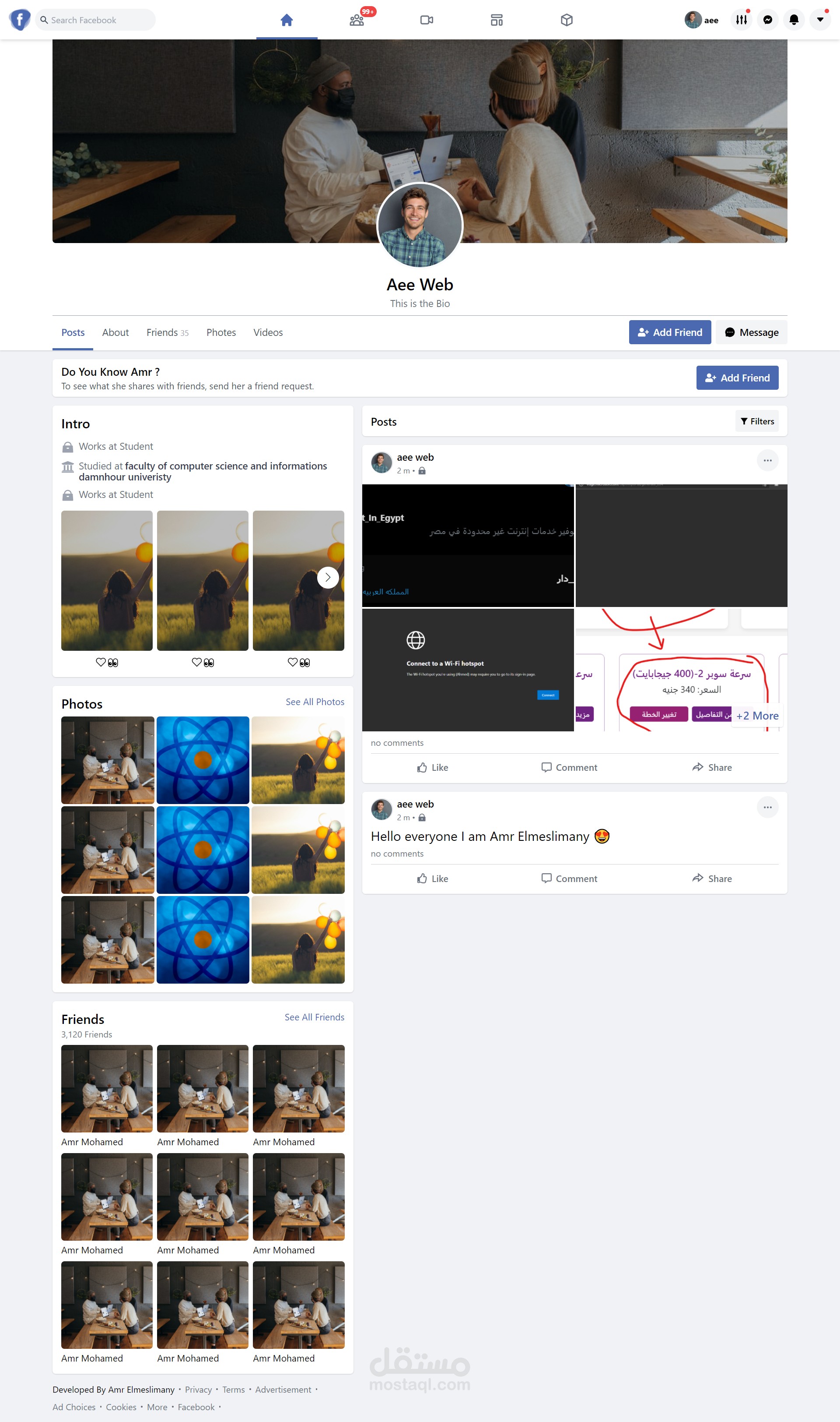 تطوير موقع نسخة من الفيس بوك (Facebook)