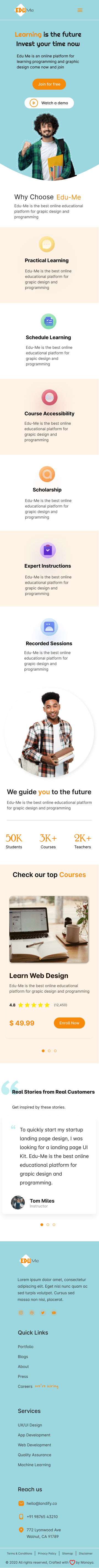 Edu-Me Academy Web Site for Education and learning programming and graphic design.