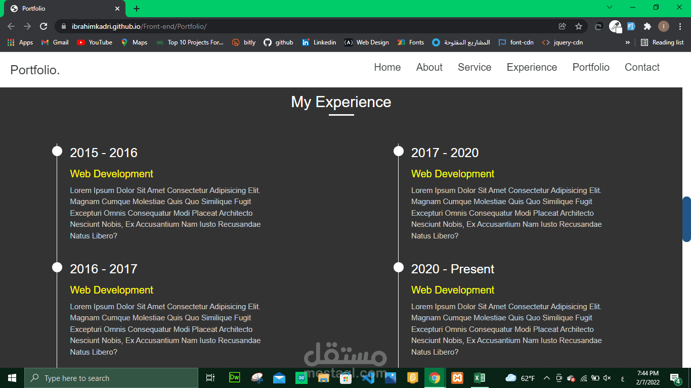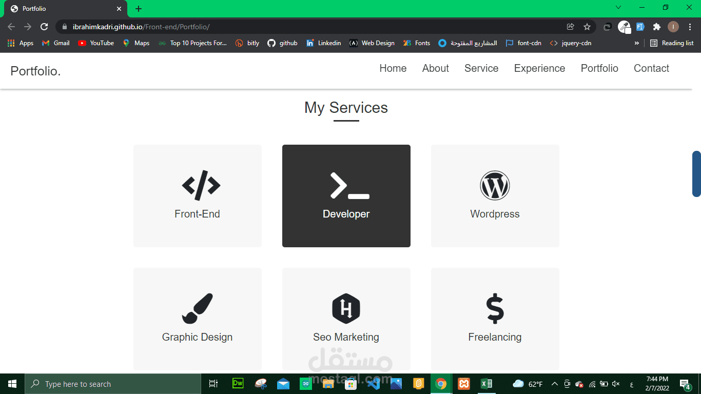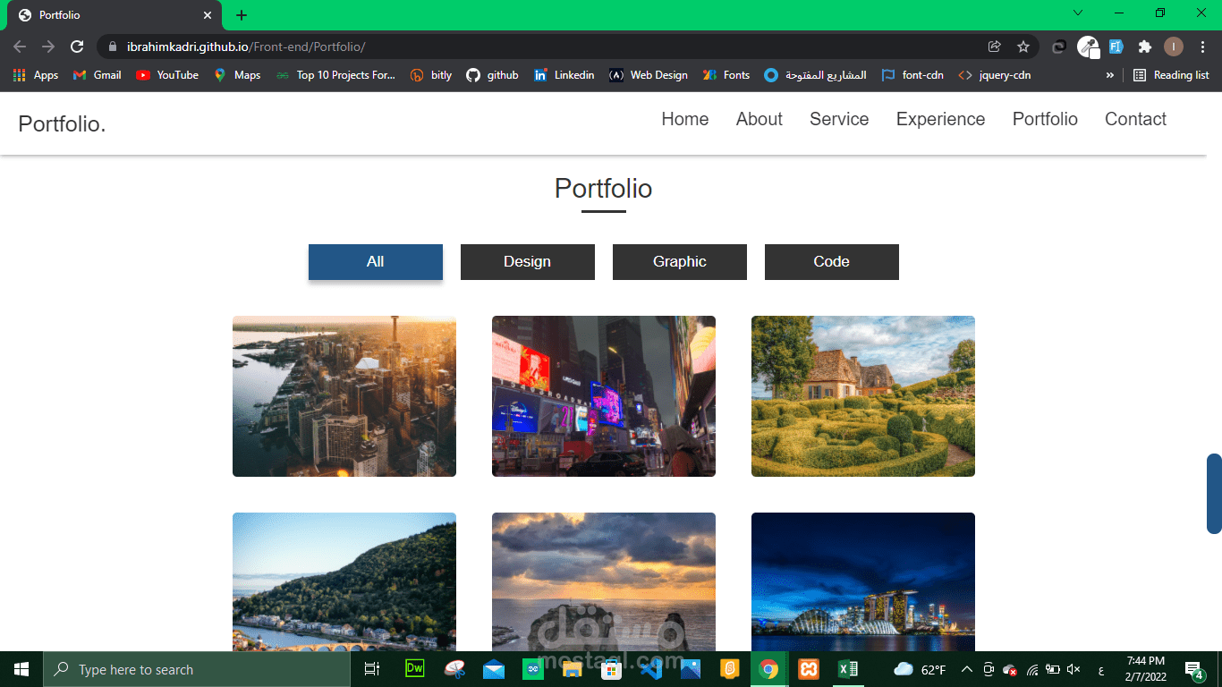5 - في القسم الخامس، تجد معرضاً للأعمال ويمكن تصفيته (Filtered Portfolio)
