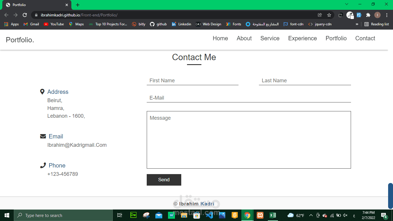 6- في القسم السادس، للتواصل معي (Contact Me)