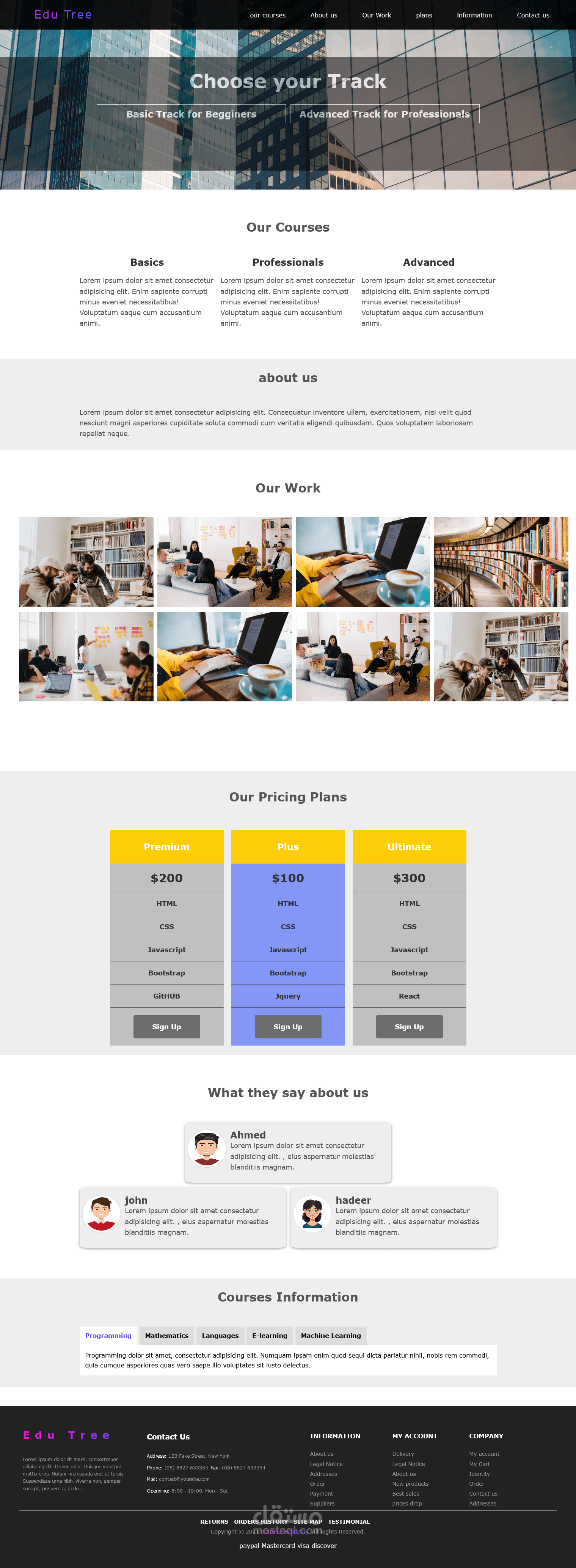- صفحة هبوط او landing page لاكاديمية تعليم , متجاوب مع جميع الشاشات Responsive design .