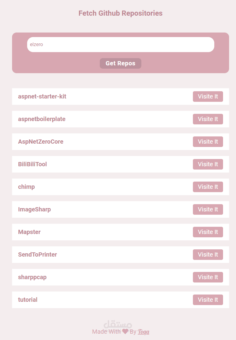 تمكنك من ادخال اسم المستخدم لجلب كل repos الخاصة بال user ع الgithub