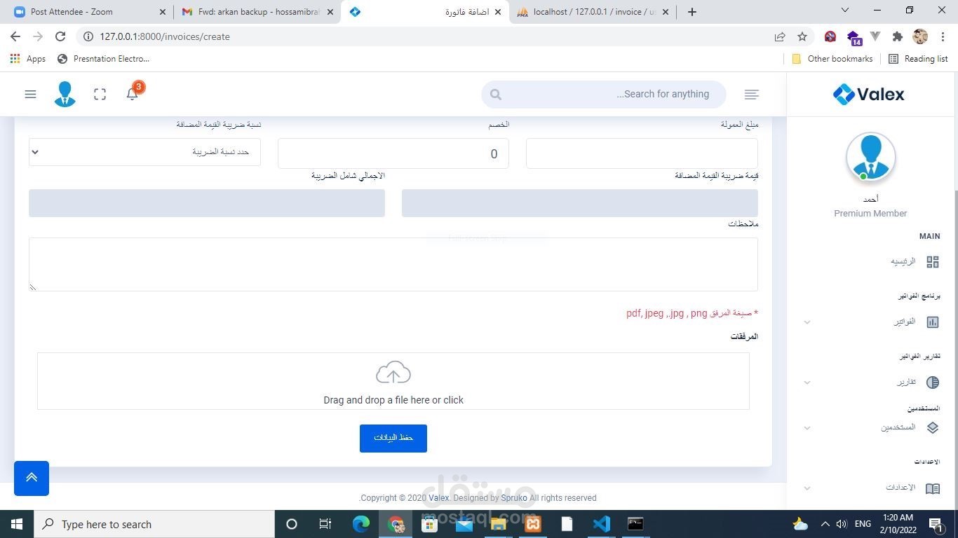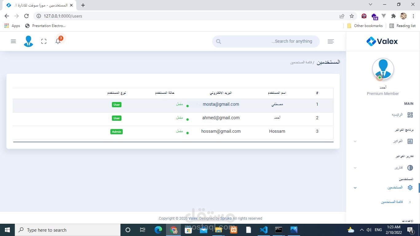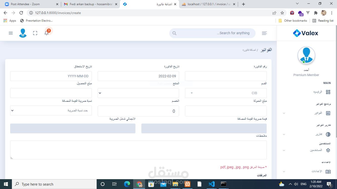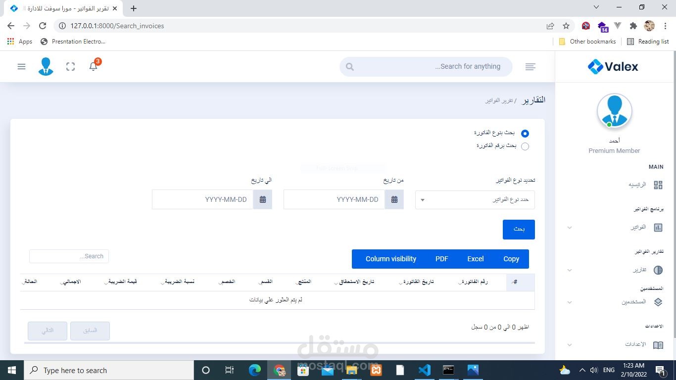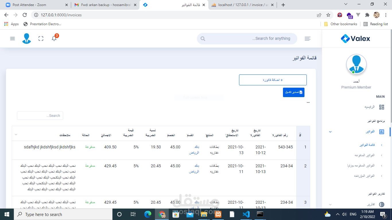 -) متعدد السماحيات ( user, admin ) للتحكم في الفواتير