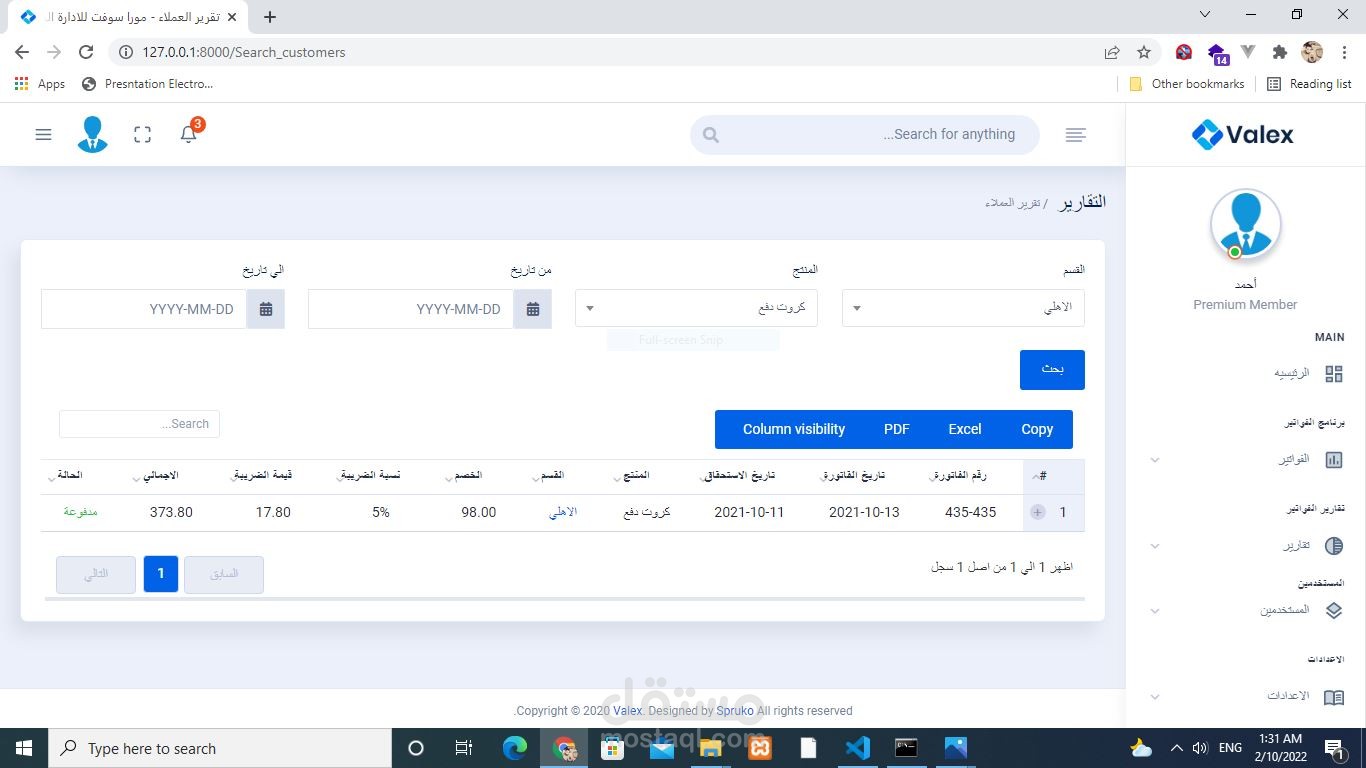 -) يمكن معرفة تقرير العملاء مع الرسوم البيانية لسهولة التوضيح و امكانية البحث