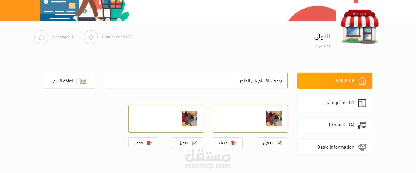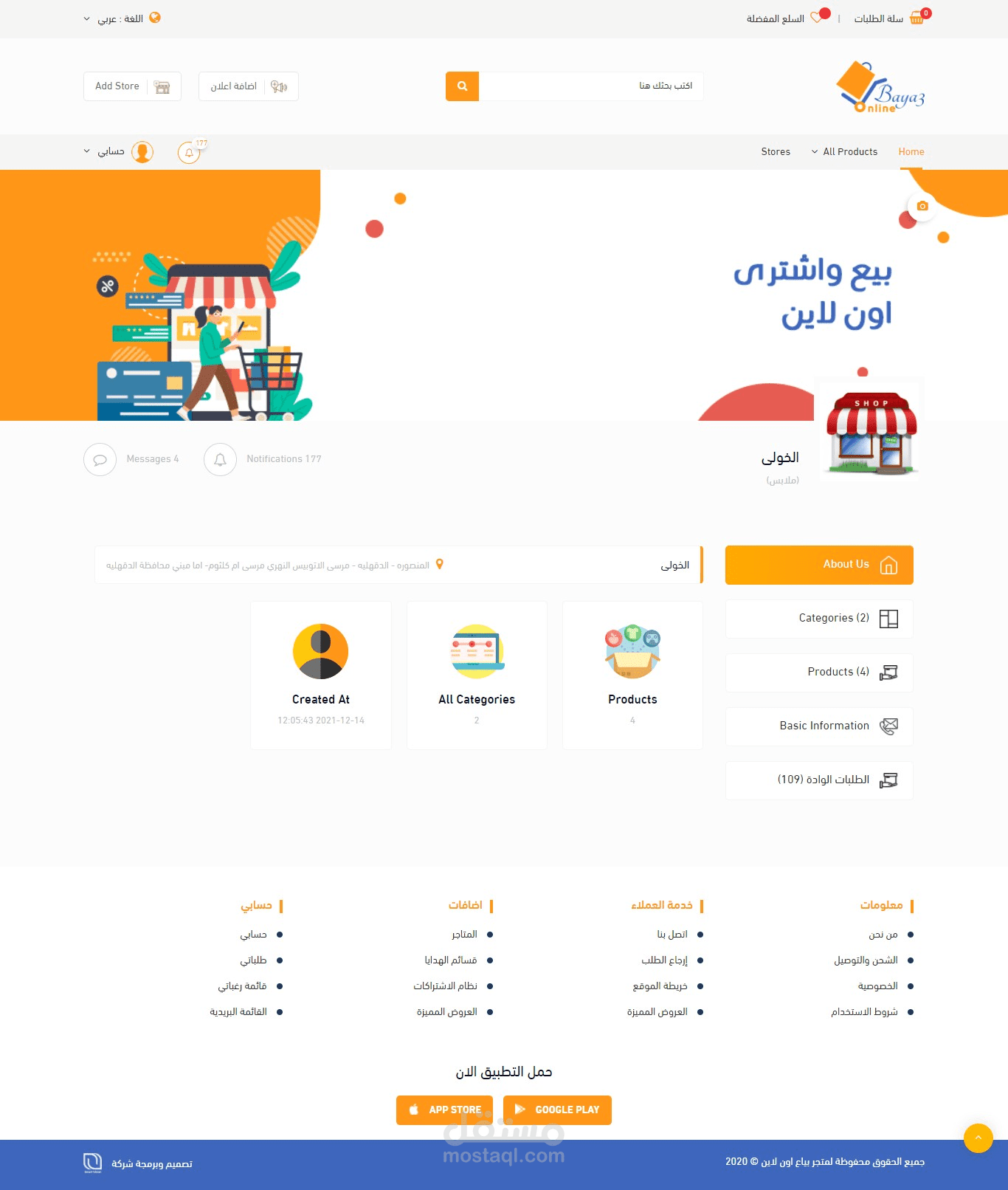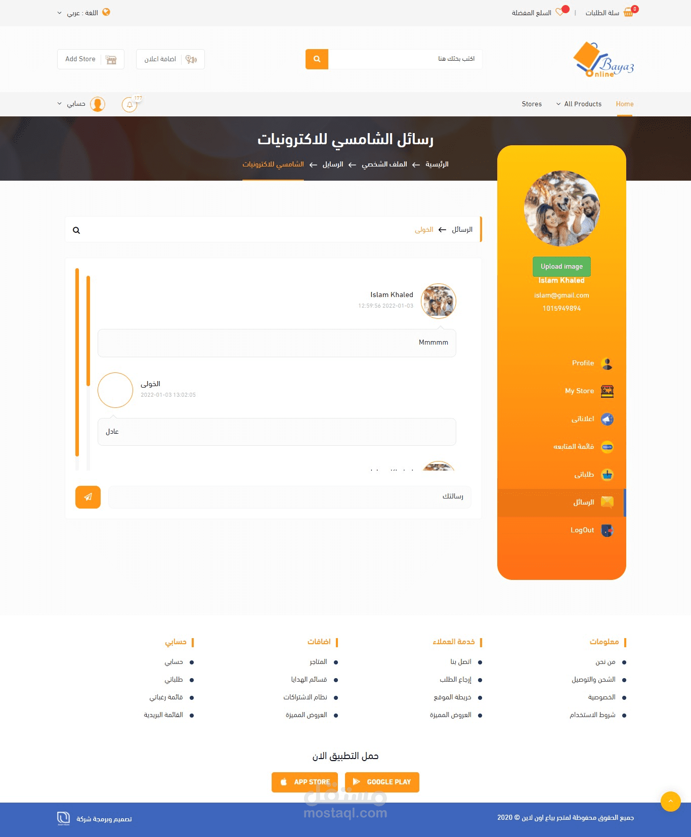ويحتوي على مزايا عمل real-time chat بين مدير الـstore وال User ودفع الكتروني