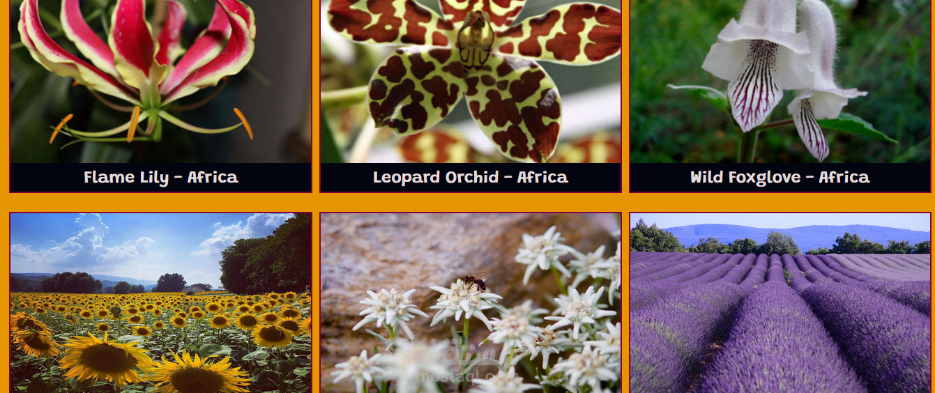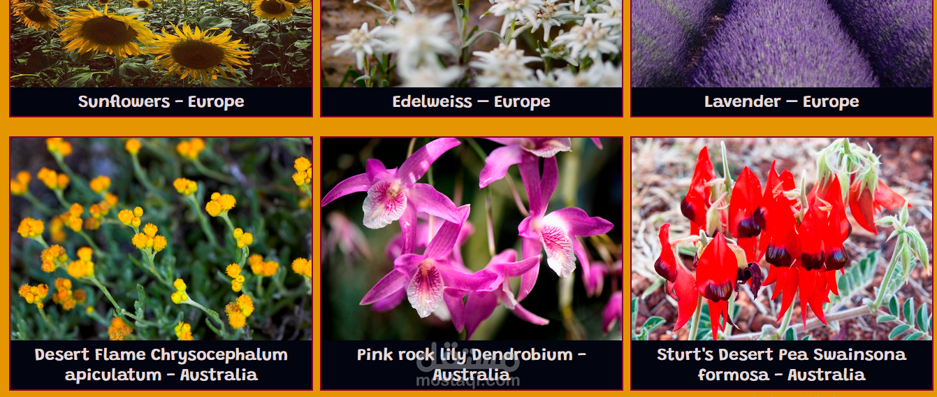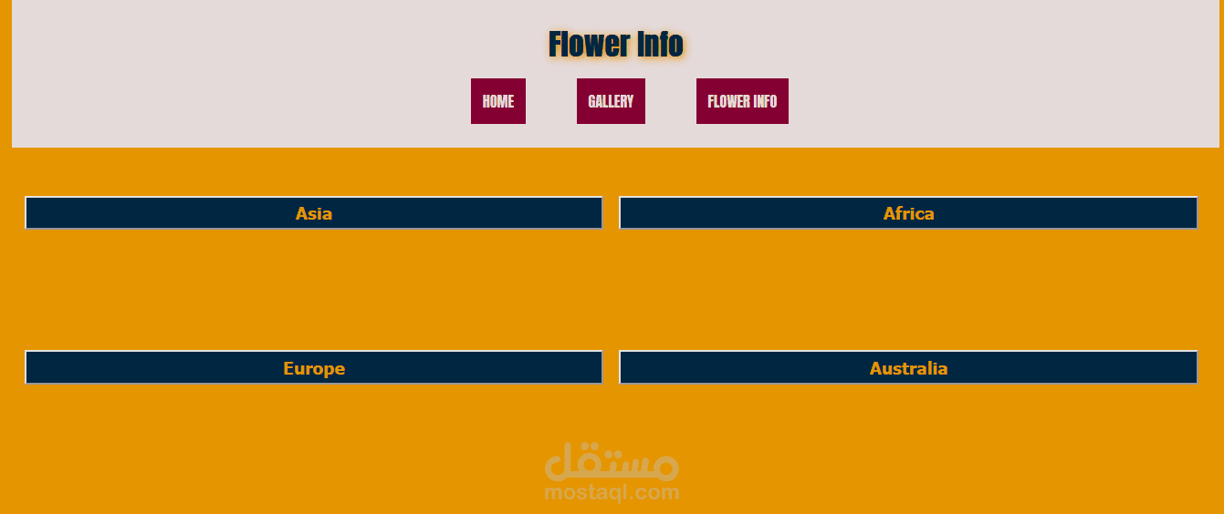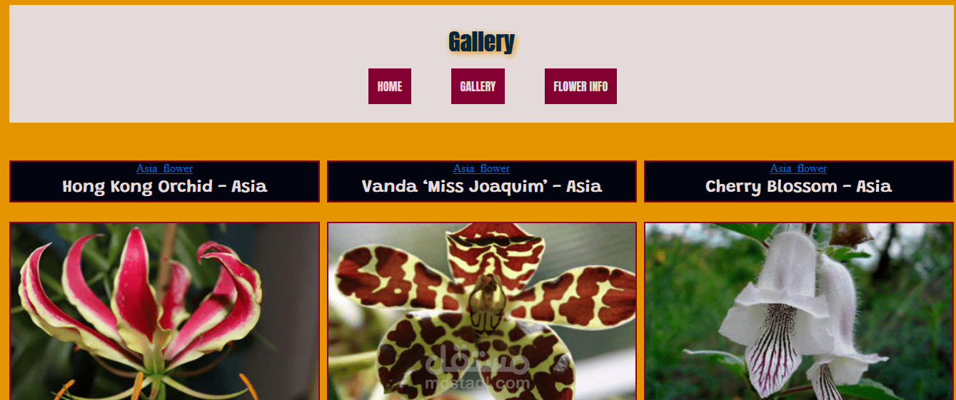 ويب سايت به ثلاثة صفحات باستخدام html و css و javaScript لعرض معلومات عن بعض انواع الزهور