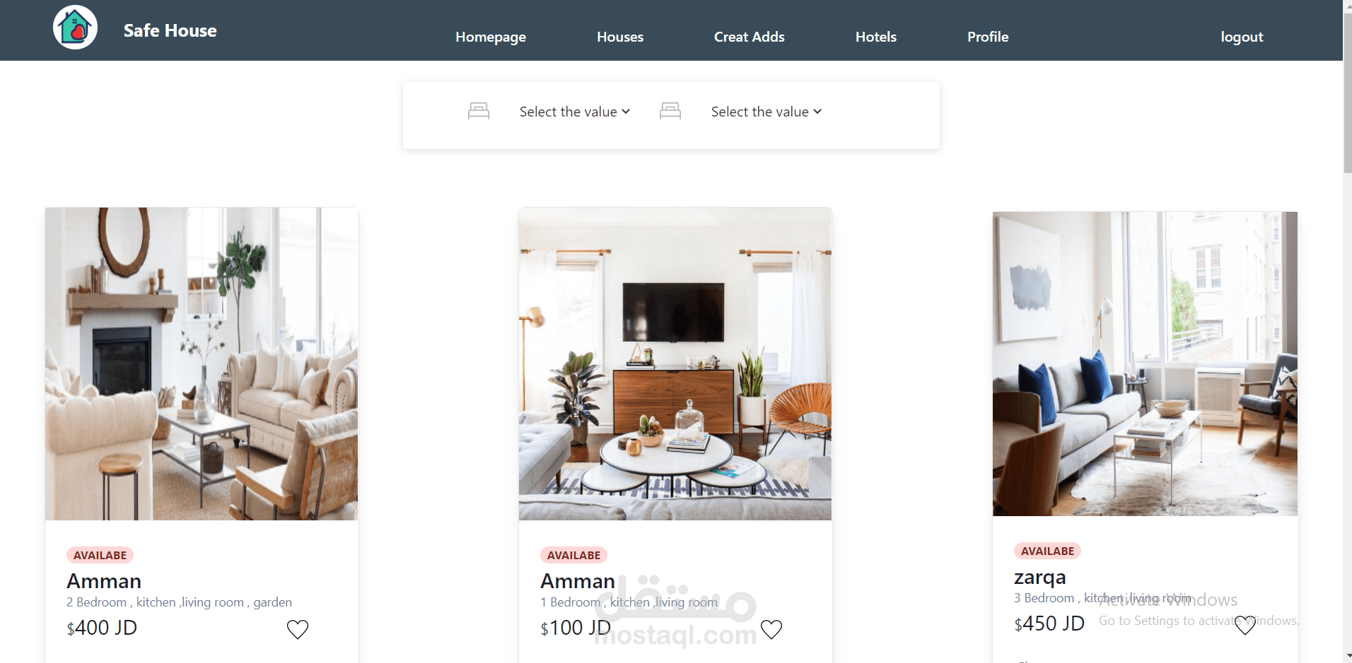 it is a web app in one side helps the user to search for a house to rent it and communicate with owner within a safe platform using chat-room, on the other side , it provides houses'owners to post ads and allows them to edit their posts.