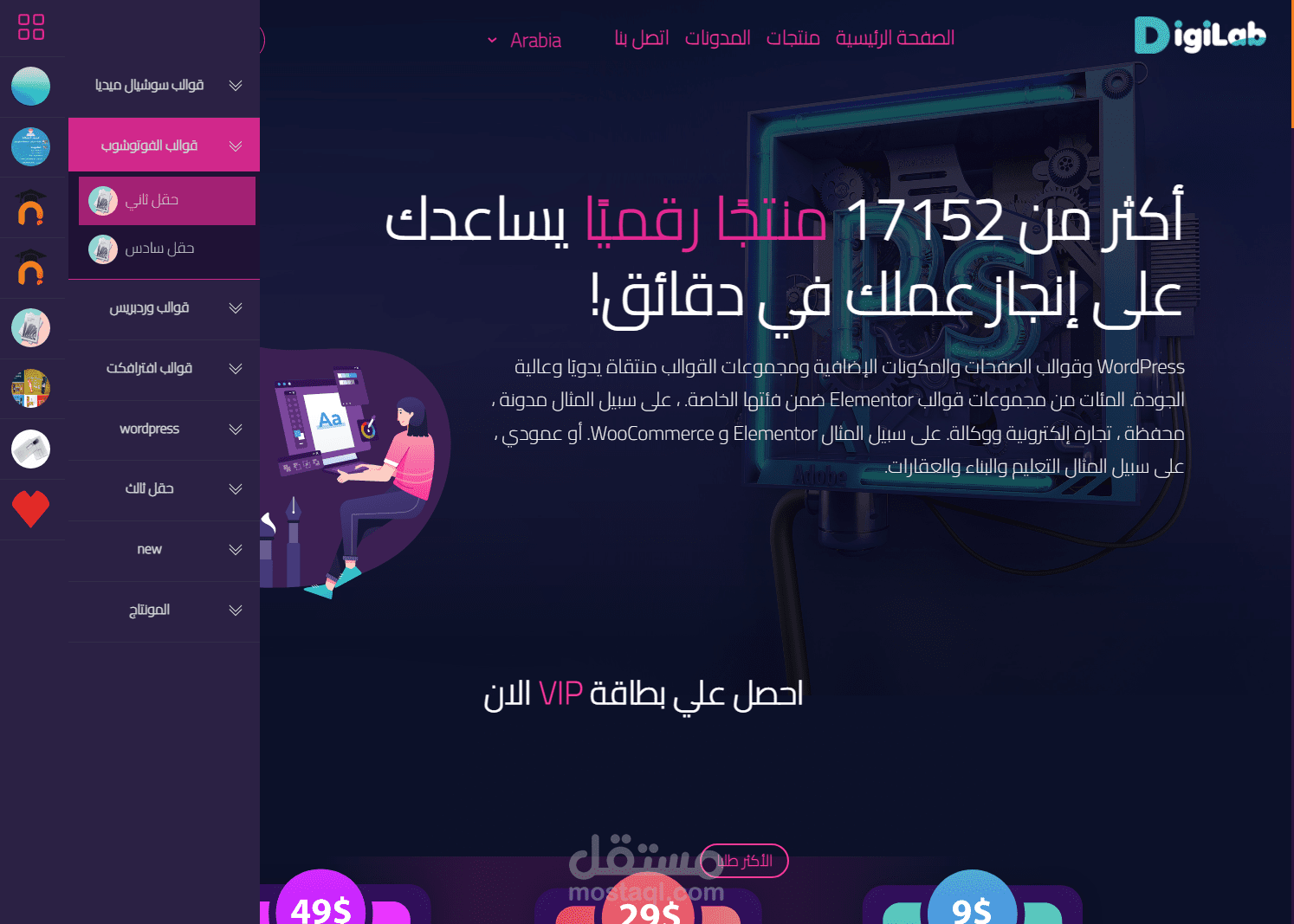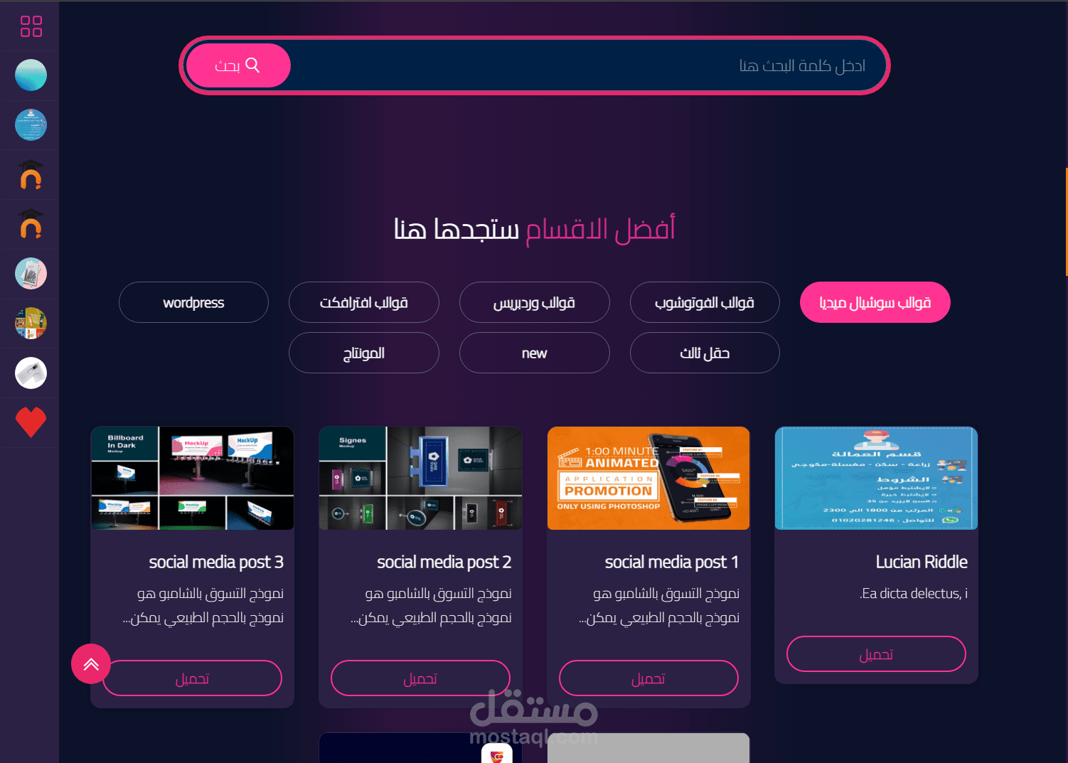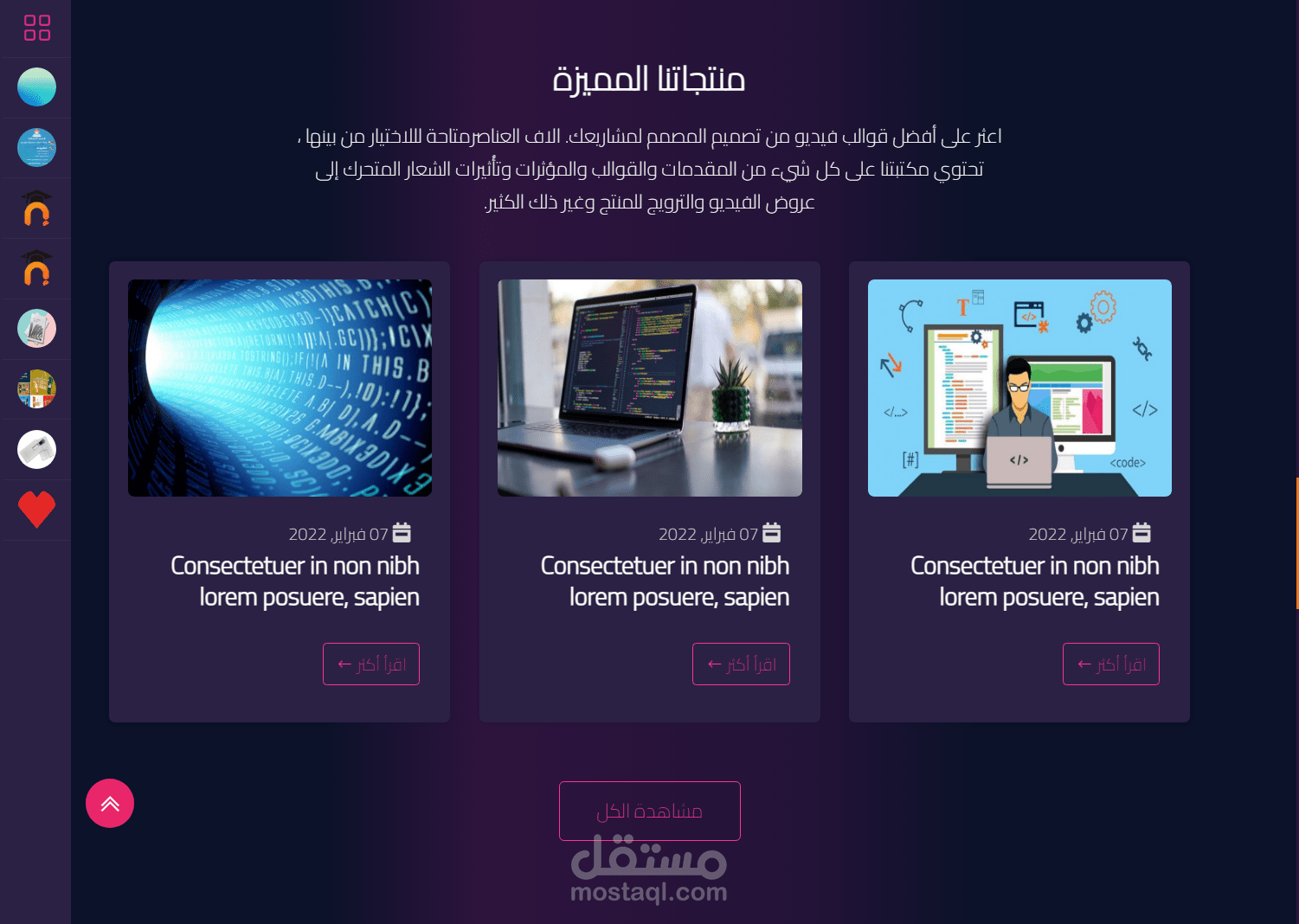 تم بحمد الله الانتهاء من اعادة تصميم سايت بثيم حديث وجذاب من ال شكل الاخضر الي البنفسجي Laravel