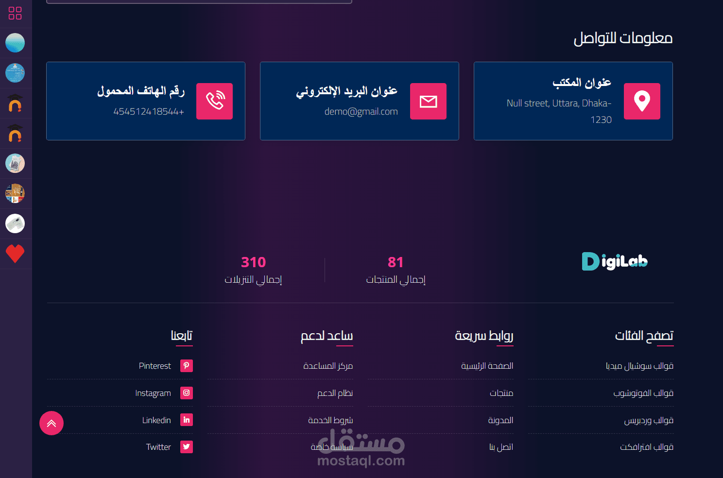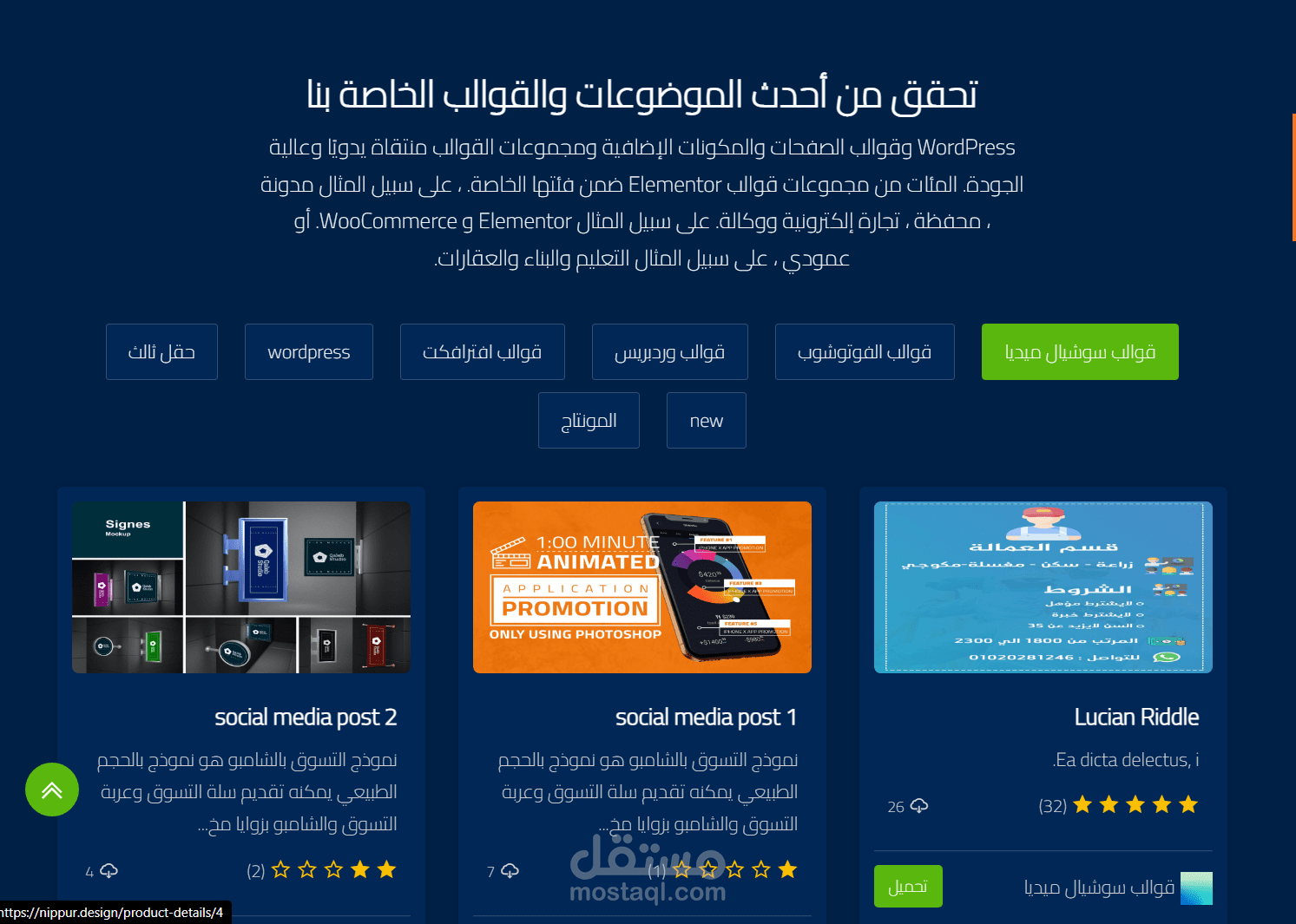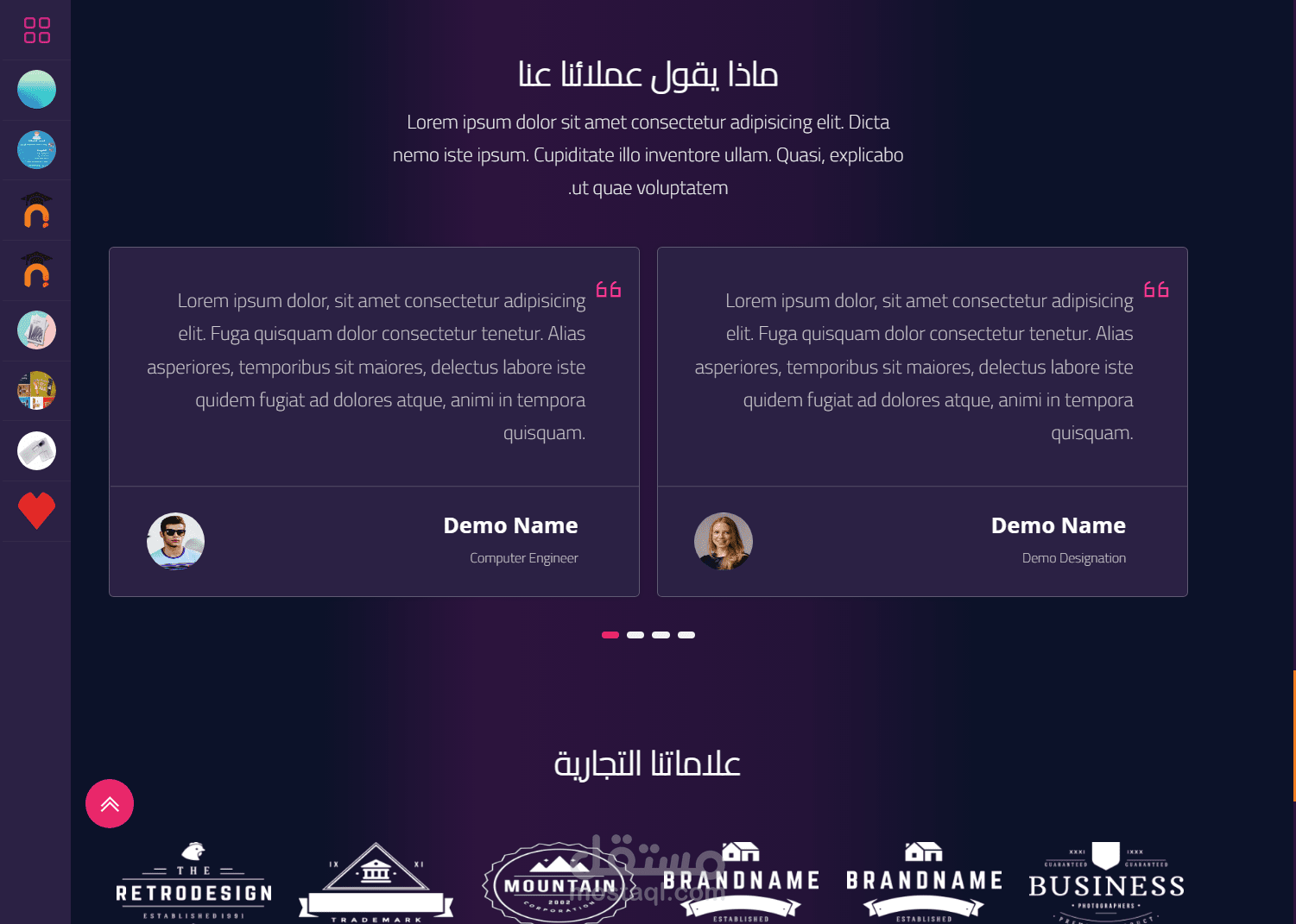 تم بحمد الله الانتهاء من اعادة تصميم سايت بثيم حديث وجذاب من ال شكل الاخضر الي البنفسجي Laravel