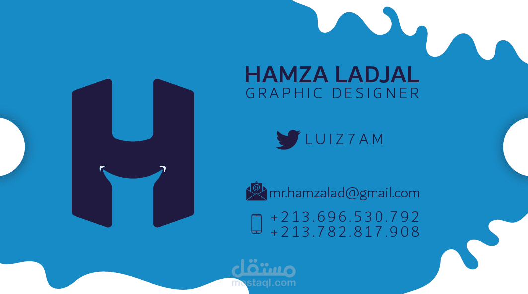 بطاقة عمل شخصية، صممتها لنفسي كما أنها جاهزة للطباعة من ناحية الألوان والـ Options الخاصة بفنيات ما بعد الطباعة.