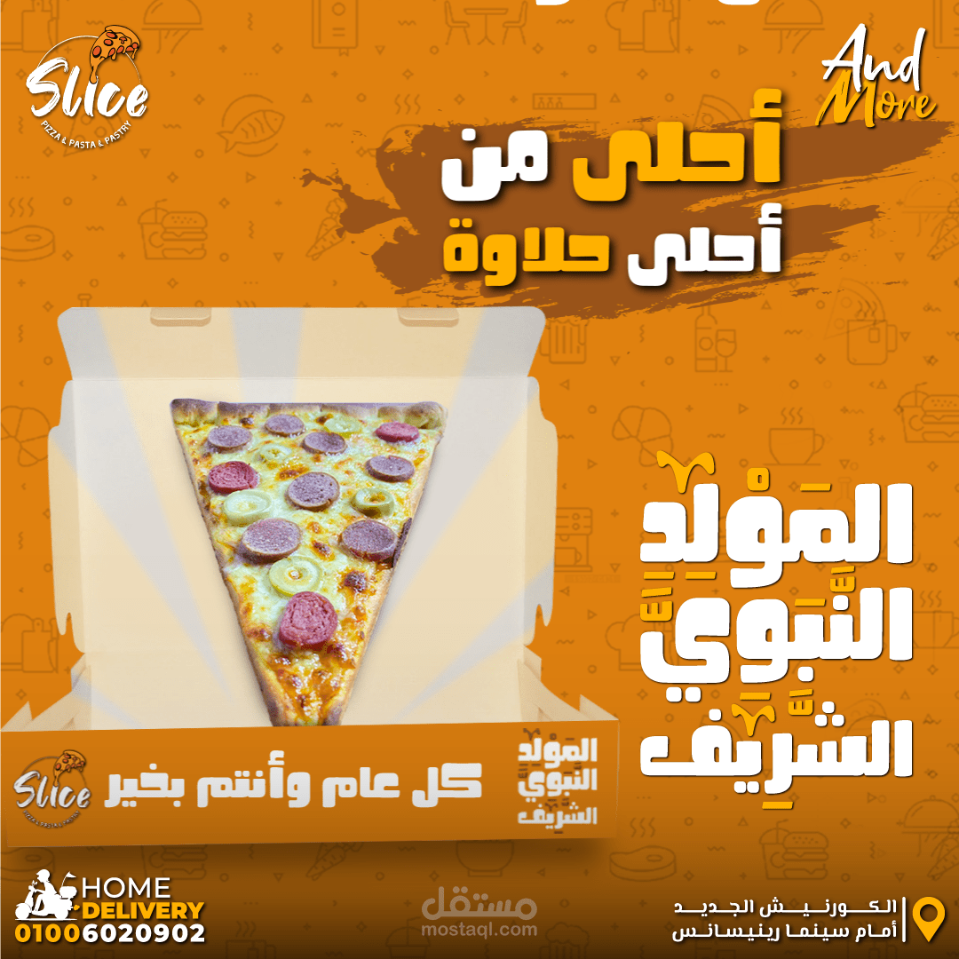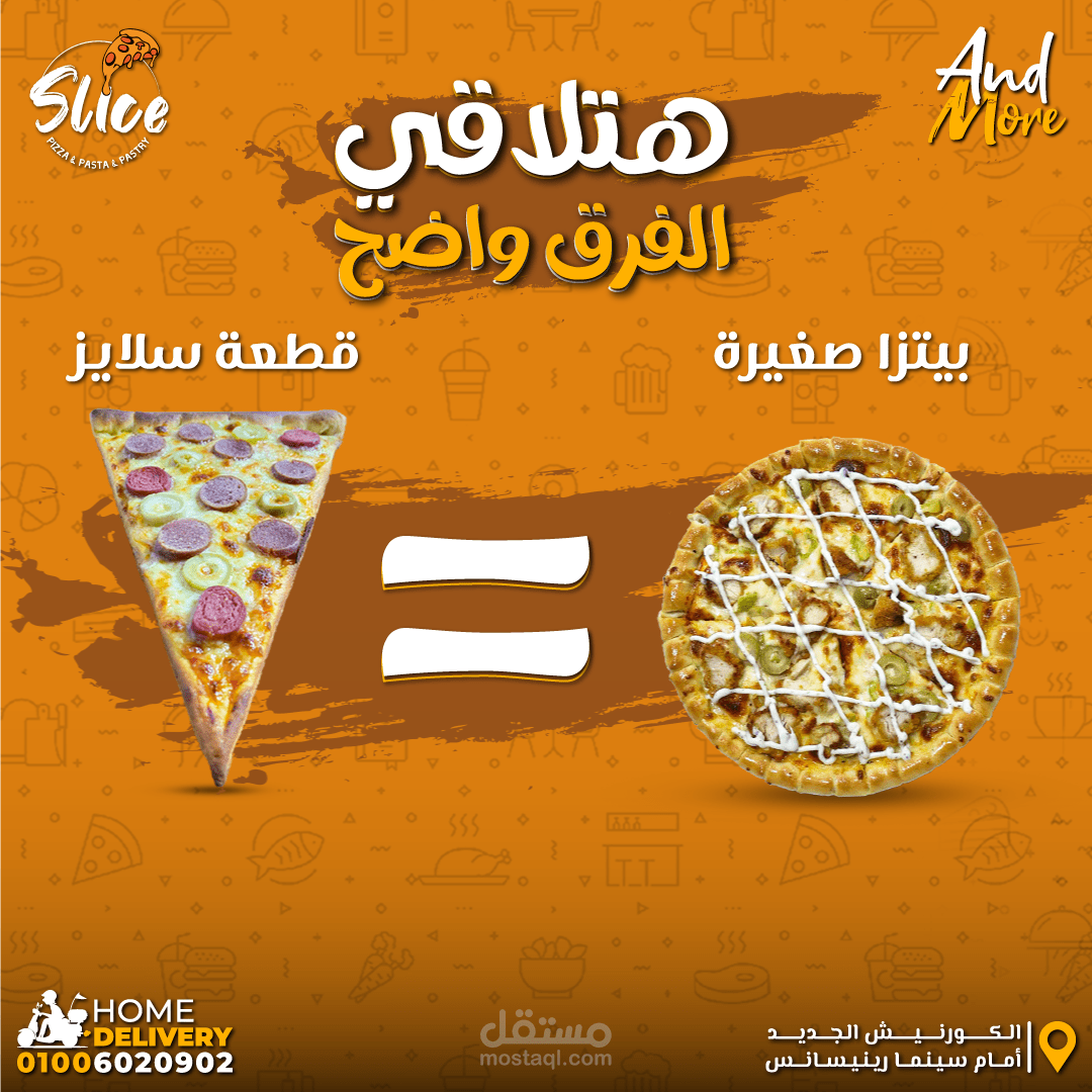 تصاميم سوشيال ميديا لمطعم وجبات سريعة (Slice)