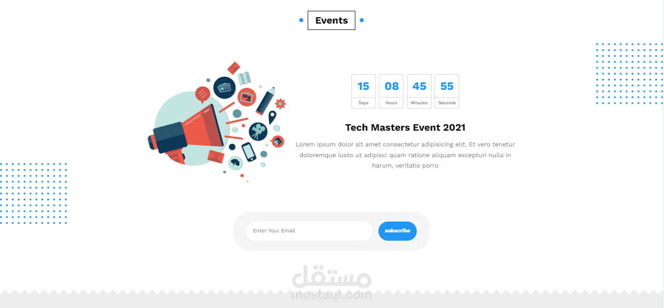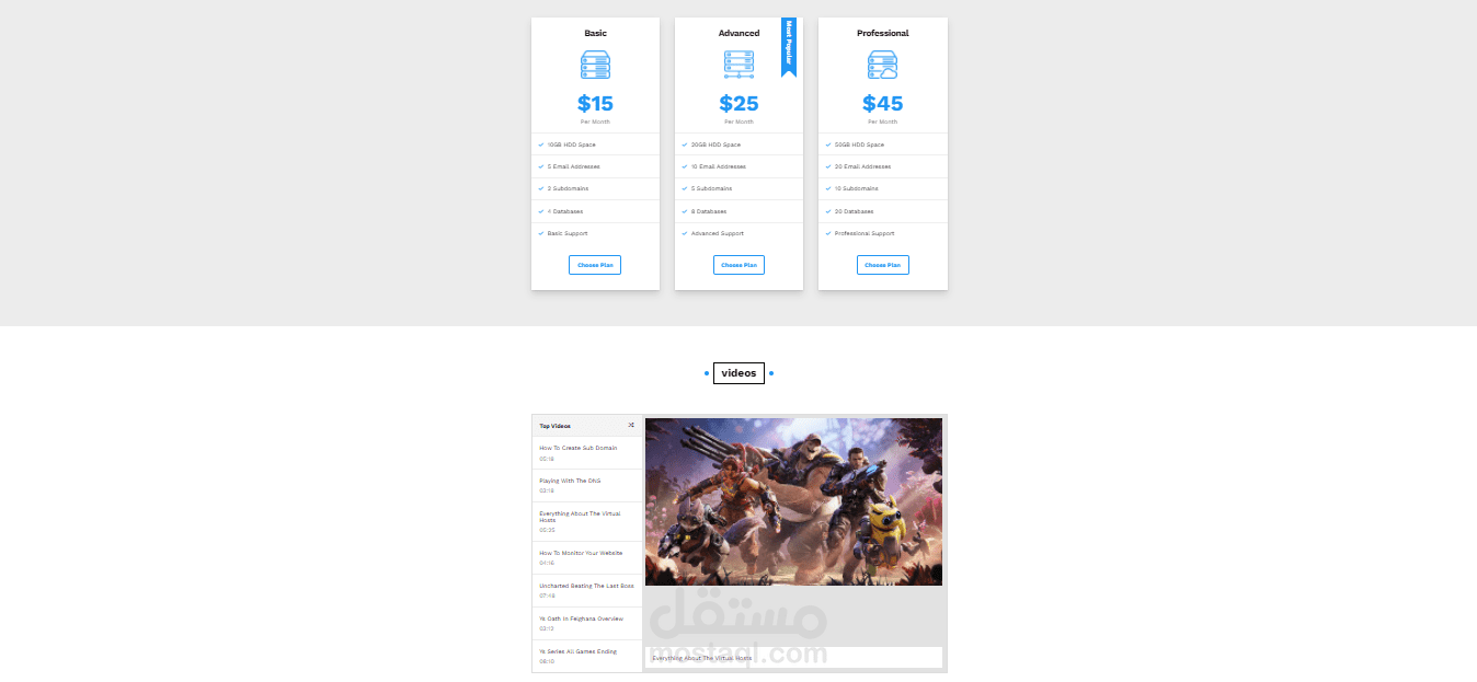 تم تقسيم التصميم الي اجزاء وهو عباره عن صفحه هبوط ومعرض اعمال ومنطقه للخدمات وصفحه لعرض المحتوى ومنطقه لاراء الزوار ومنطقه لعرض فريق العمل والفيديوهات الخاصه بالفريق ومنطقه خاصه بعروض الاسعار والخطط ومنطقه لعرض المعلومات الخاصه بالشركه وطريقه التواصل
