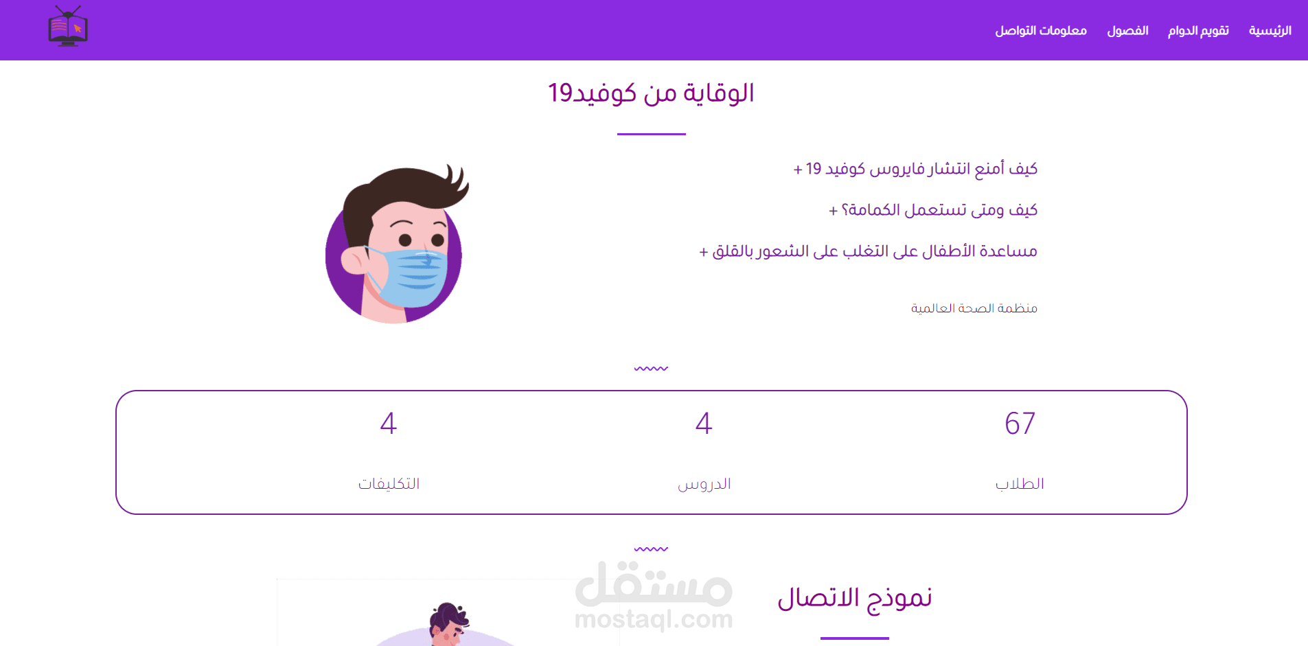 مستودع للتعلم الإلكتروني مع إمكانية تنفيذ الاختبارات والألعاب التعليمية, مع واجهة تحكم تتضمن معلومات المستخدم ومستوى تقدمه.