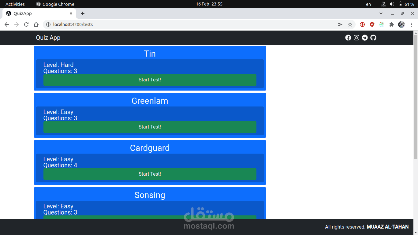 مشروع quiz app تم إنشاؤه باستخدام angular