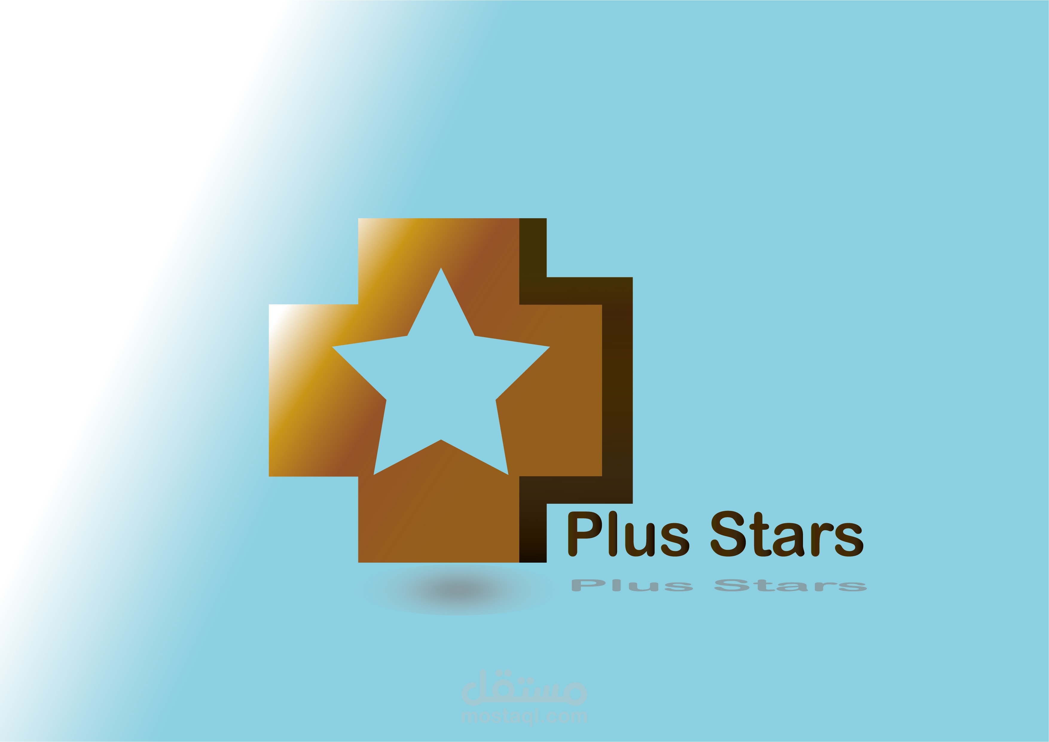 لوغو باسم plus stars قمت فيه بدمج علامة الplus مع النجمة للتعبير عن الشعار وعن اسم الشركة كي تكون دلالة ربط بين الشعار والاسم .