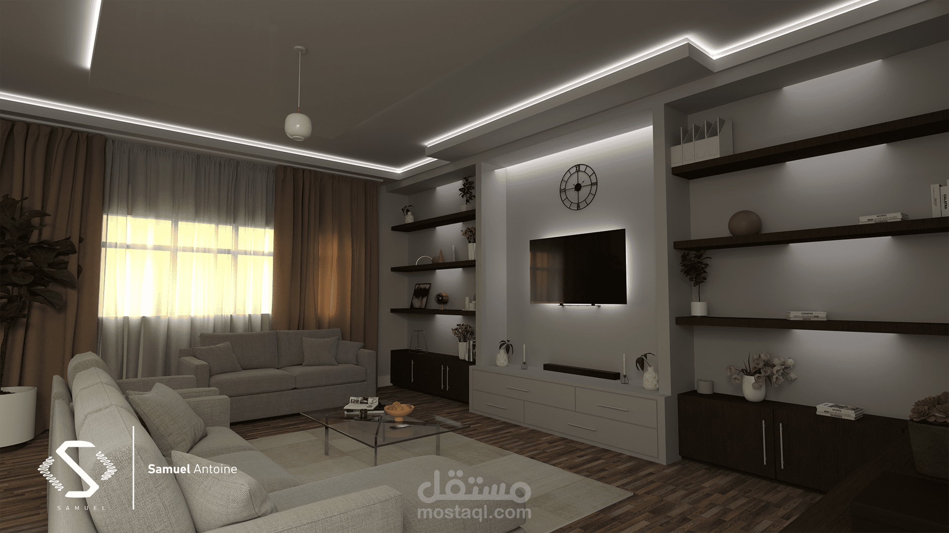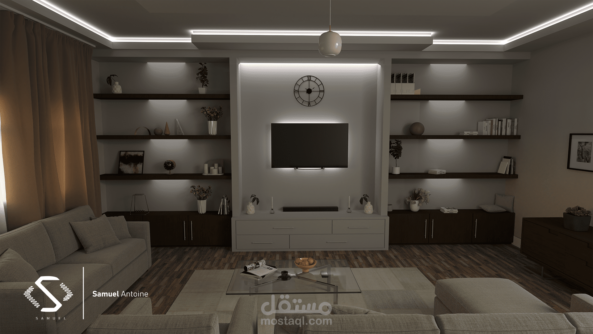 - هذا تصميم لغرفه معيشه بفيلا او بشقة سكنية مستوي عالي من الرفاهية