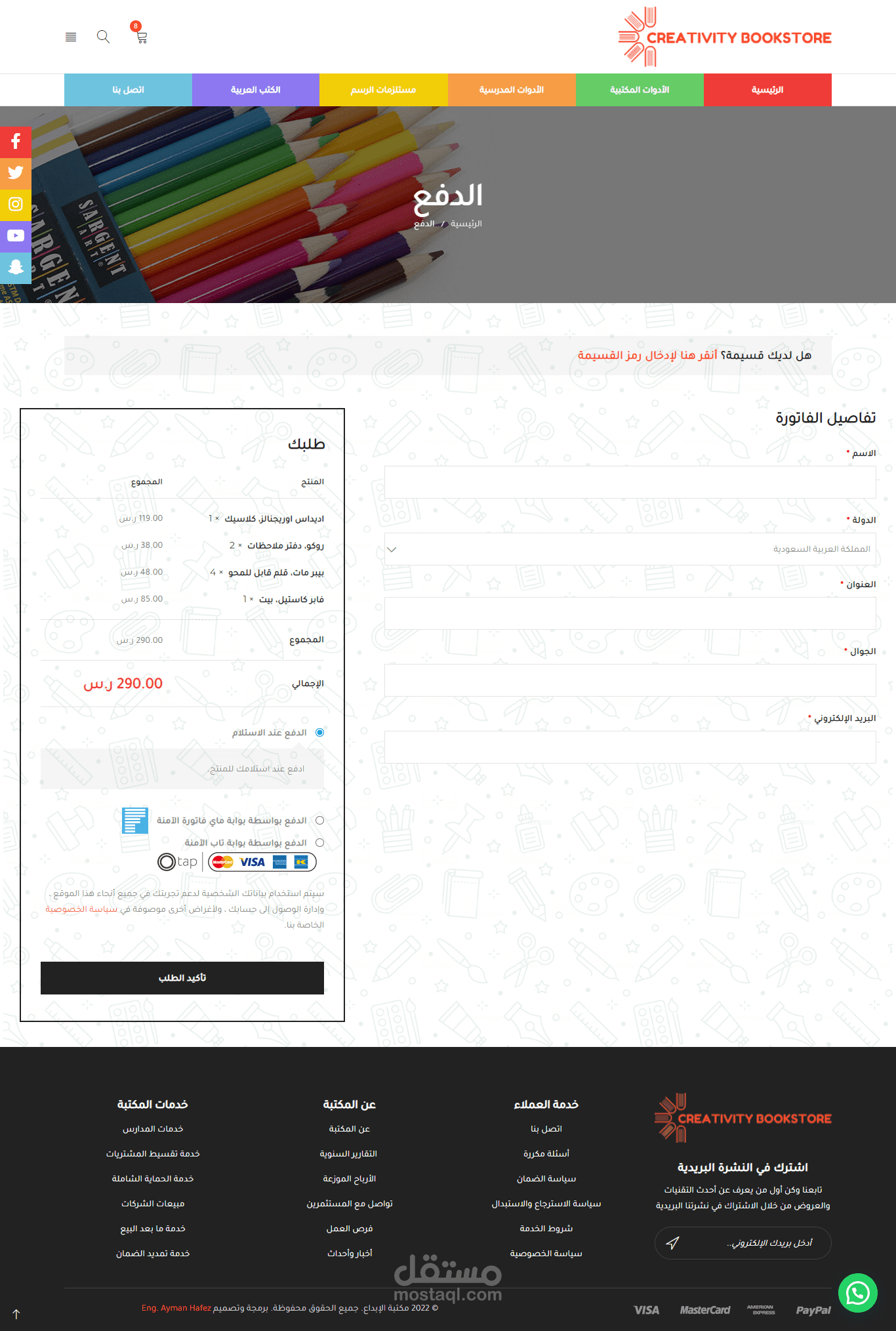 تصميم وبرمجة المتجر الإلكتروني لمكتبة الإبداع..