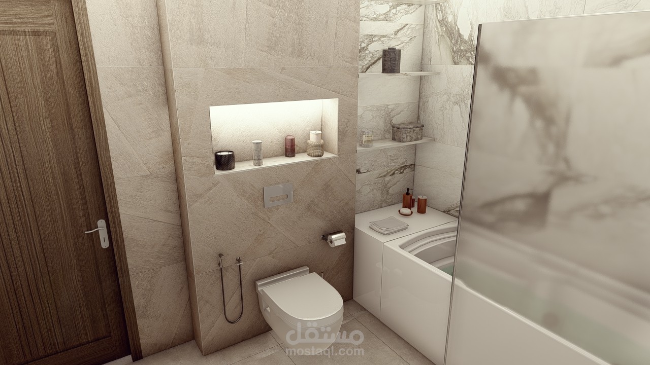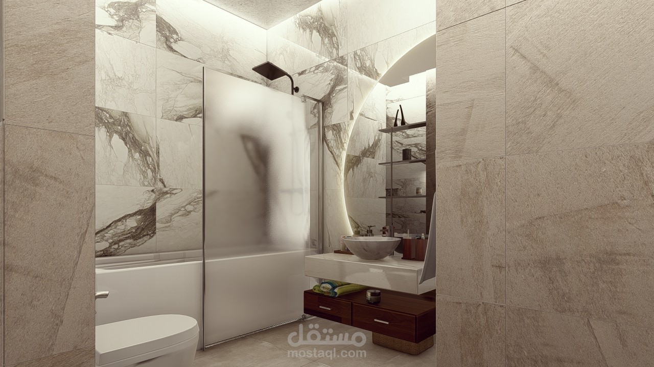 اعادة تصميم وترميم عدة حمامات ودورات مياه على طراز الموديرن