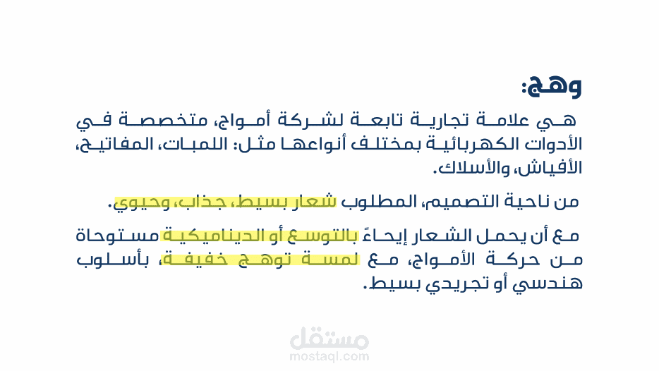 كان المطلوب هو شعار يعبر عن الديناميكية و التوسع، اضافة لتعبيره عن الشركة الأم "أمواج".