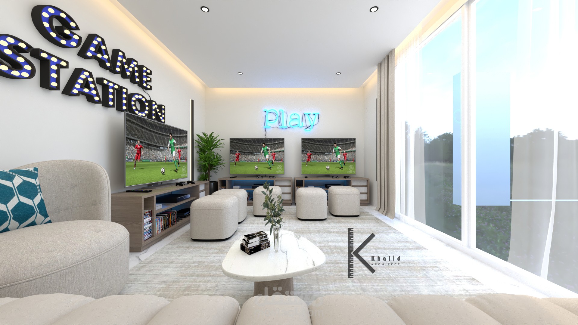 تصميم داخلي لغرفة جميج مع جلسه على الطراز المودرن ضمن مشروع فبلا بالممكله وتجهيز مخططات تنفيذيه كامله للمشروع