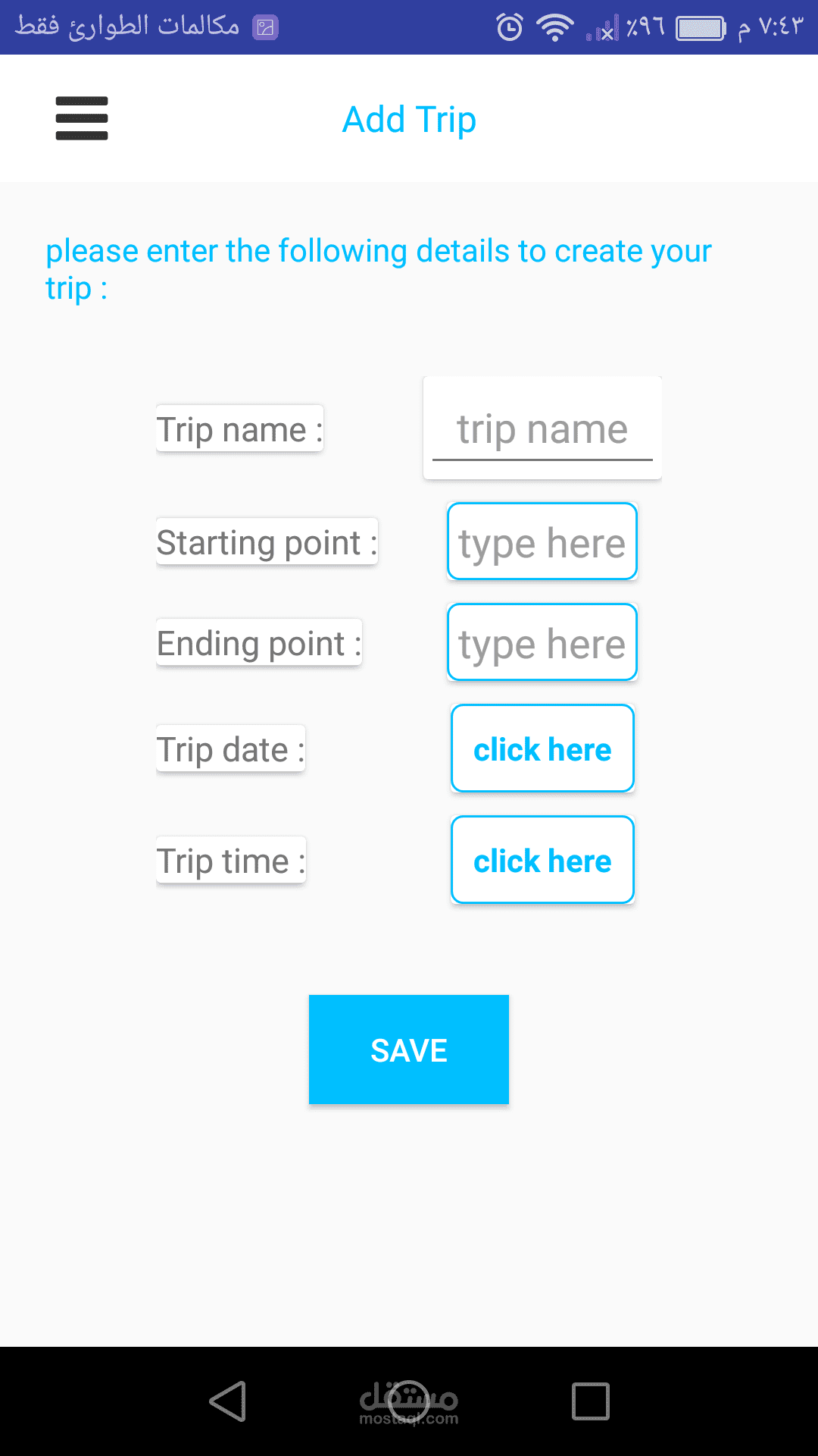 * تطبيق أندرويد الهدف منه تذكير المستخدم بالرحلات أو المشاوير التي سيقوم بها.